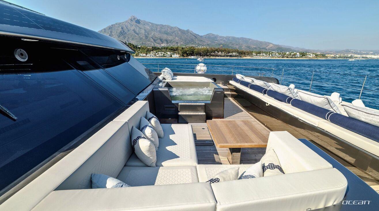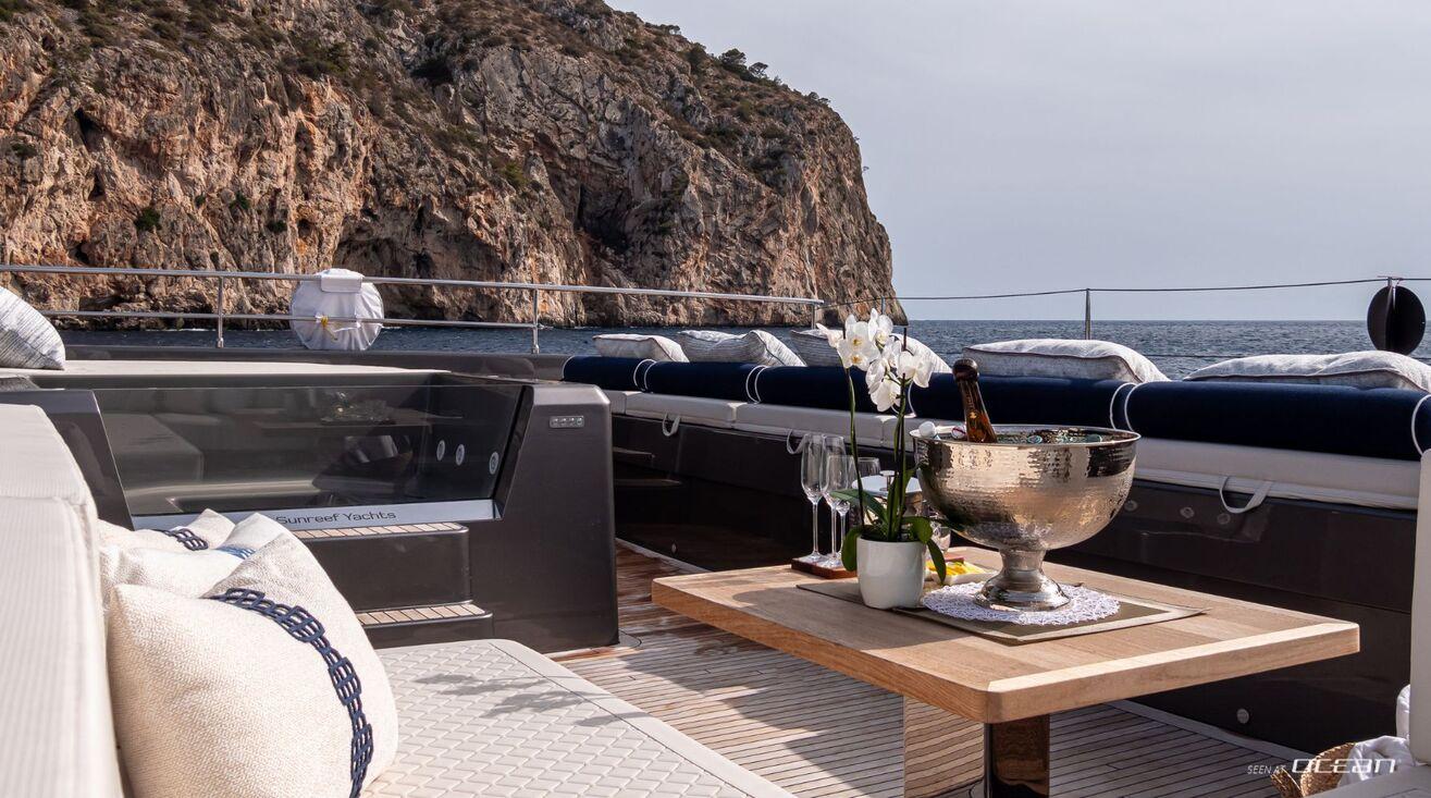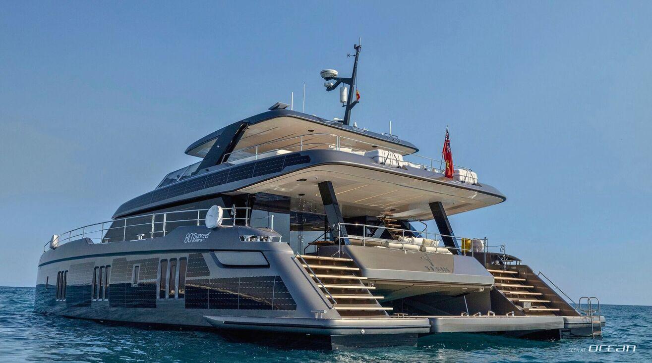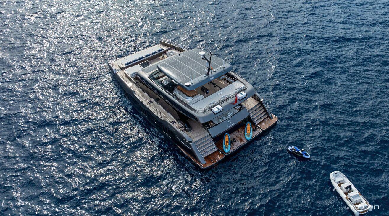 Outdoor areas are designed for both relaxation and play, with multiple dining and lounging zones, shaded seating, and a deck jacuzzi offering a spa-like retreat at sea. A fast-paced toy selection includes a jet ski, e-foils, assorted boards, inflatables, and a dedicated wavemaker for wake surfing. Home-ported in the Balearics, TESNI will cruise the Western Mediterranean from France to Italy before relocating for a vibrant winter season in the Caribbean. Supported by an exceptional crew of 4, TESNI 80 Sunreef Power Eco for charter delivers an engaging, eco-conscious, and thoroughly enjoyable luxury catamaran charter experience.