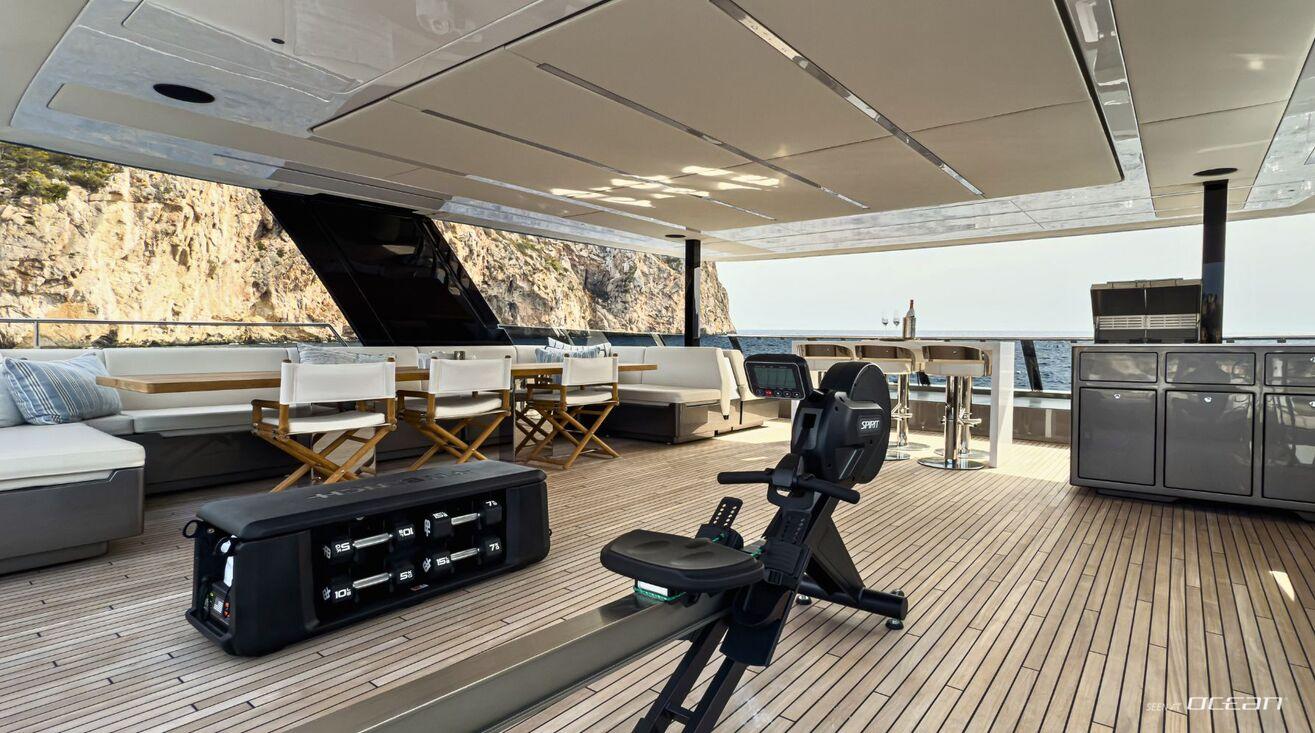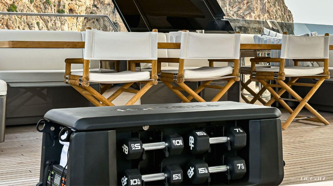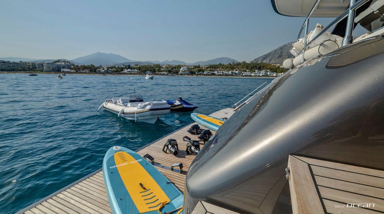 En-suite bathrooms in all cabins, air condition throughout, generator, solar panels, electric/hybrid propulsion, TV in salon and 3 cabins, Netflix, music library with outdoor speakers, Starlink, Wi-Fi internet, jacuzzi, watermaker, board games, gym gear, swimming platform, and a variety of water toys.