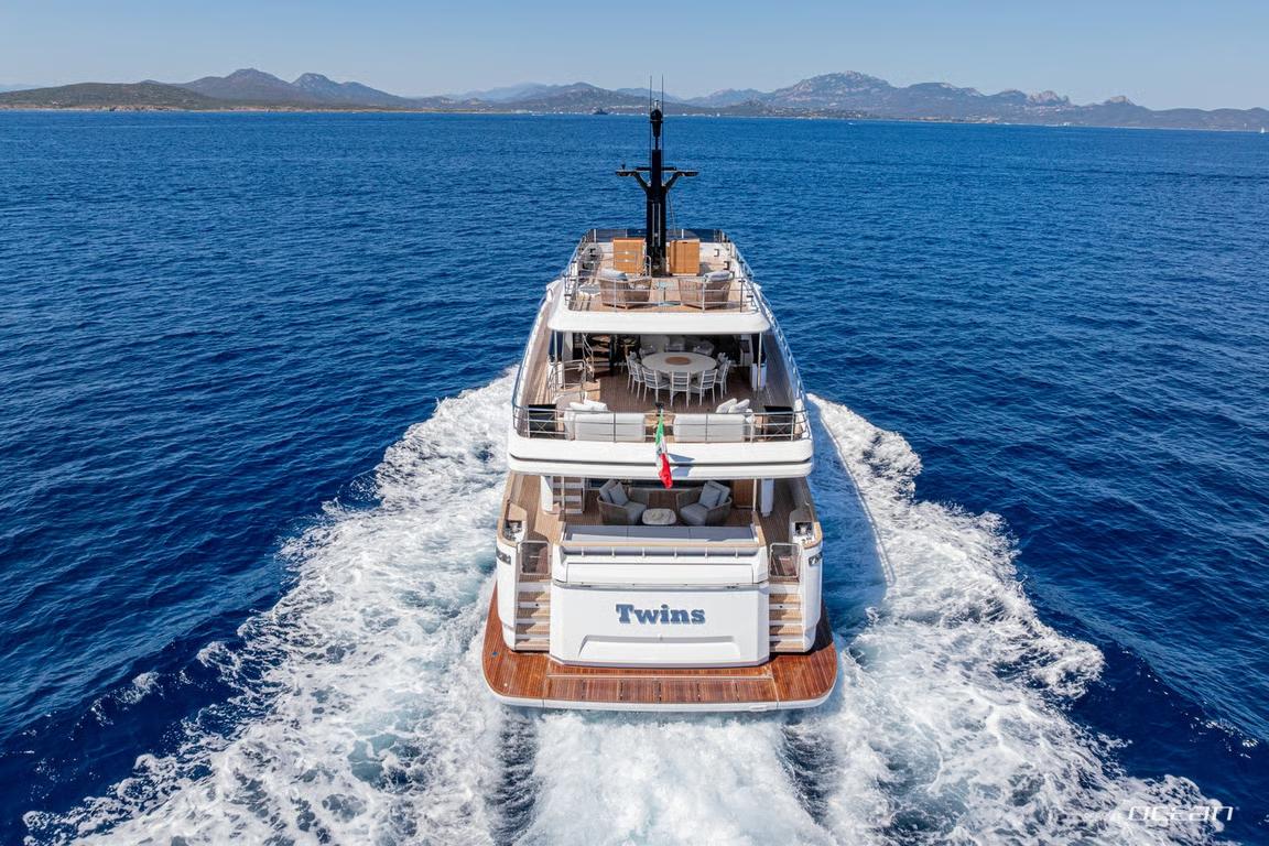 TWINS is a brand-new addition to our Italy superyacht charter fleet, delivered in 2025 as part of the prestigious Custom Line Navetta 30 series by Ferretti Group. Refined, spacious, and unmistakably Italian, Charter Yacht TWINS introduces a new standard of relaxed luxury cruising, combining timeless design with contemporary comfort. Available for charter from Naples and the Amalfi Coast, as well as Sardinia and Sicily, she is perfectly positioned to explore Italy’s most iconic coastlines in style.