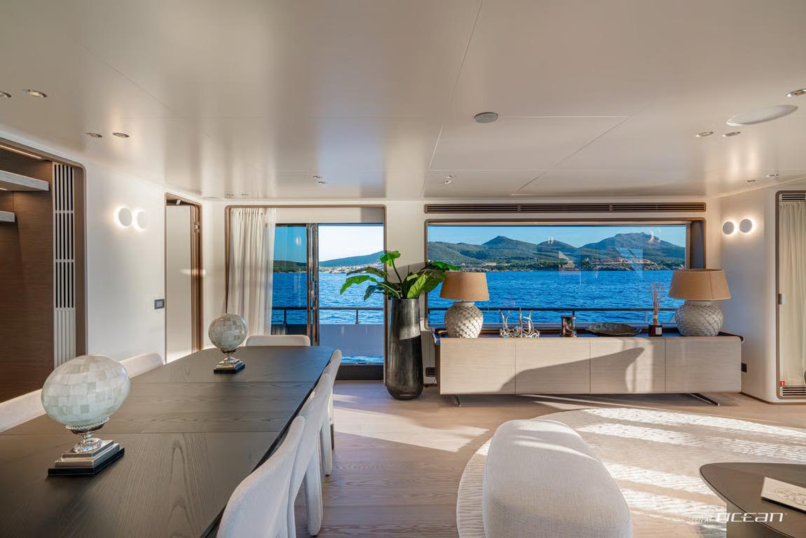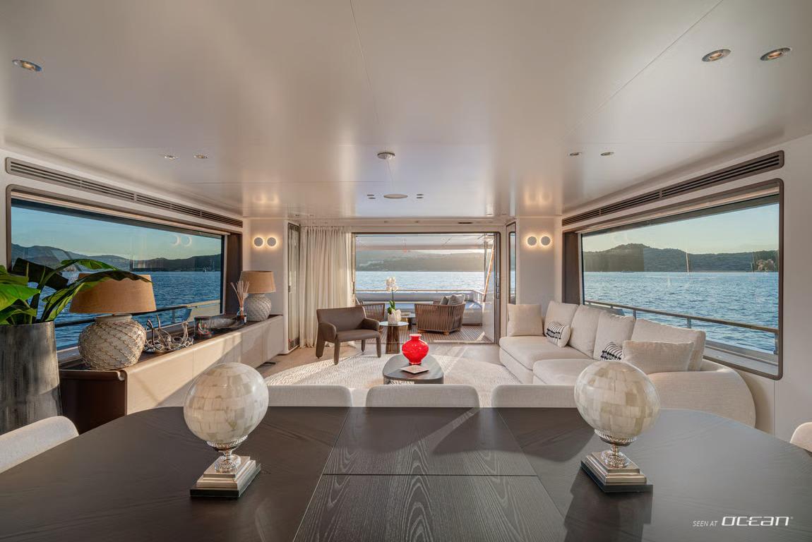 Spread across three generous decks, TWINS offers beautifully balanced interior and exterior living spaces designed for effortless enjoyment. Her interiors are flooded with natural light through oversized windows, revealing a calm palette of pale woods, soft whites, and warm neutral tones. High ceilings enhance the sense of volume throughout, while advanced stabilizer systems at anchor and underway ensure smooth cruising at all times. Modern audio-visual systems, Wi-Fi, and Starlink connectivity keep guests entertained and connected throughout their journey.