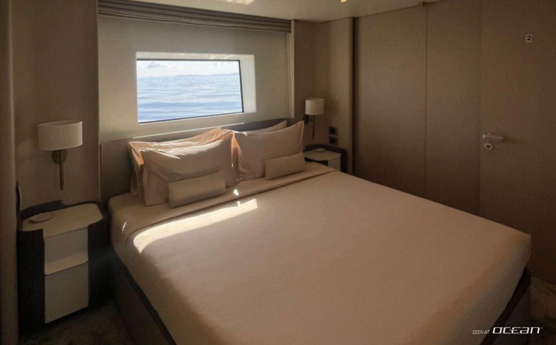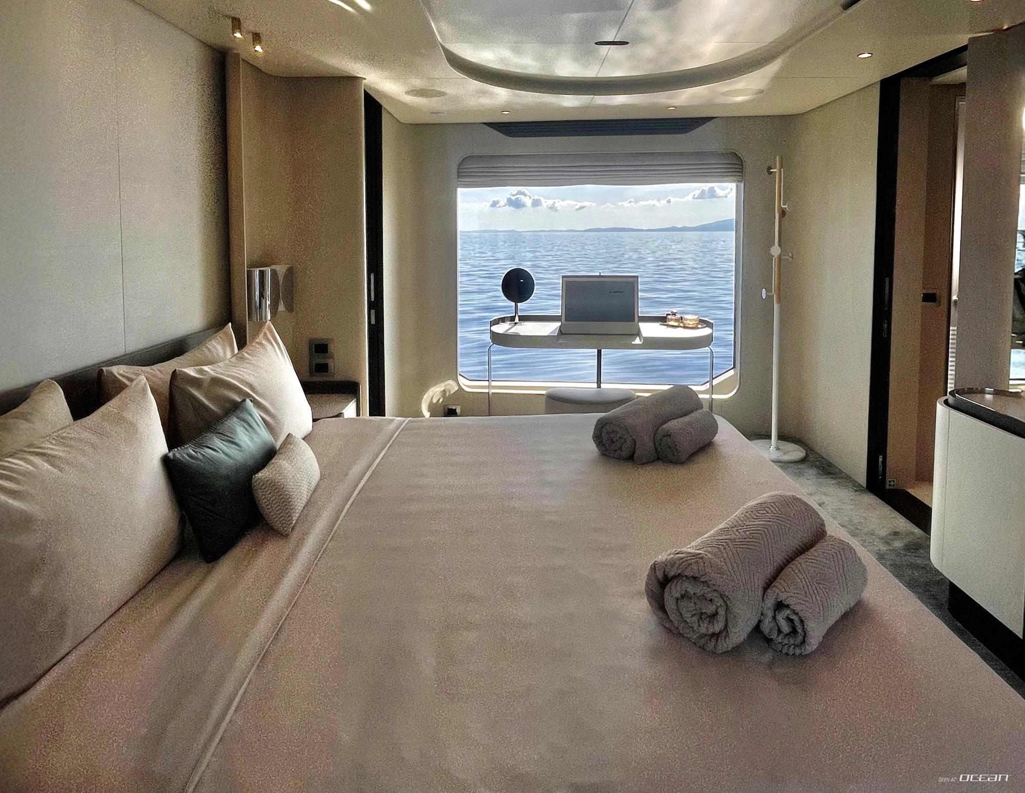 Charter Yacht VOLANTE accommodates up to 10 guests in 5 beautifully appointed cabins, including a full-beam master stateroom on the main deck and 4 guest cabins on the lower deck. The layout comprises 2 VIP cabins and 2 twin cabins that convert into doubles, making this charter yacht Azimut Grande 32M an excellent choice for couples, friends, and families alike. All cabins feature ensuite bathroom facilities, smart TVs with Bluetooth connectivity, and Starlink internet, ensuring comfort and connectivity throughout the journey.