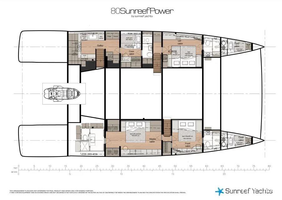Cabin configuration: 1 master, 1 VIP triple, and 1 double cabin