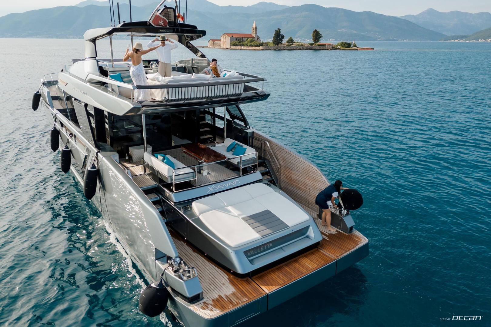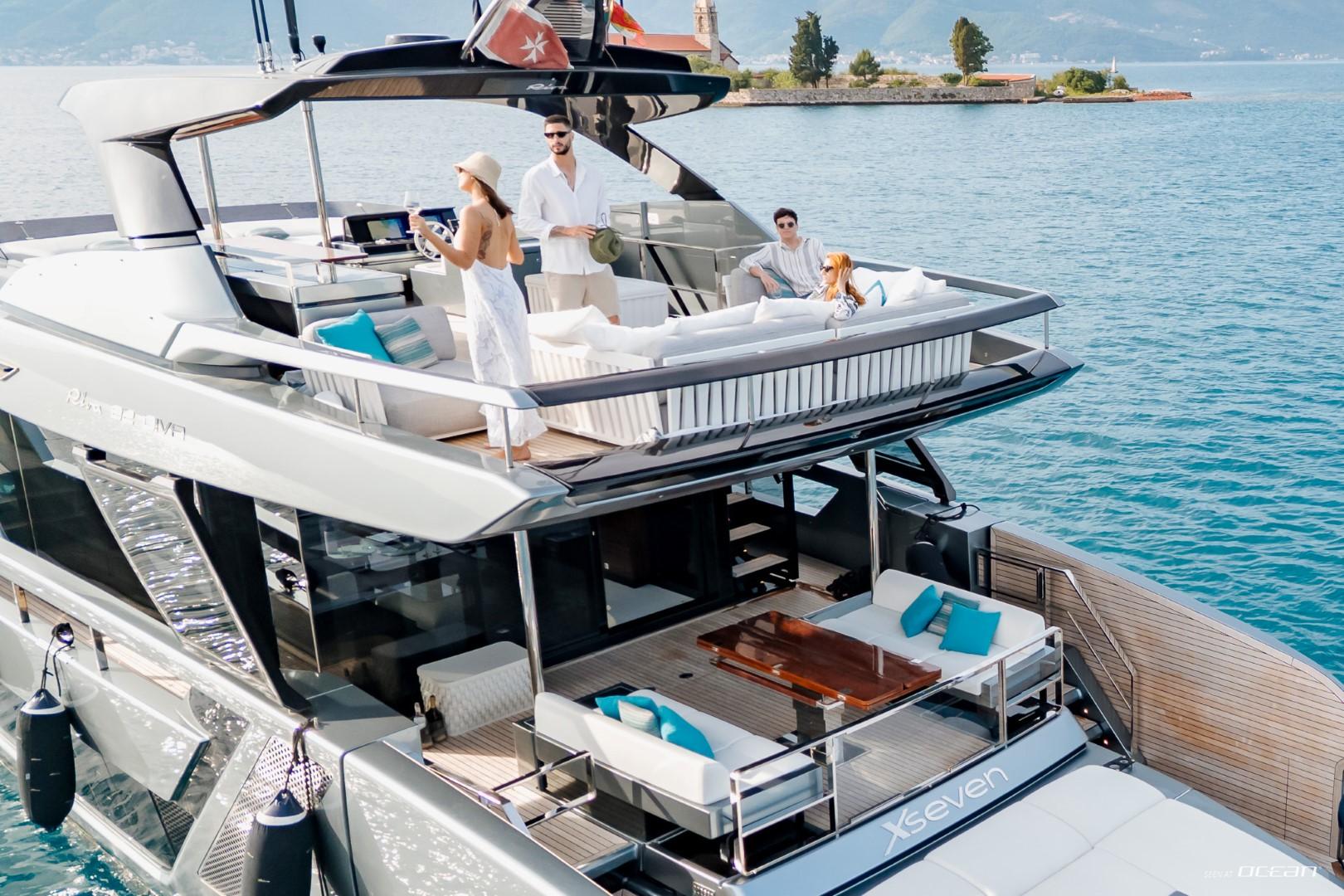 On board, charter yacht X SEVEN is designed for relaxed outdoor living. The flybridge provides a versatile setting for dining and lounging, while the foredeck offers open sunbathing areas with uninterrupted views. At the stern, the beach club becomes a central feature, creating a comfortable space close to the water and enhancing the overall onboard experience.