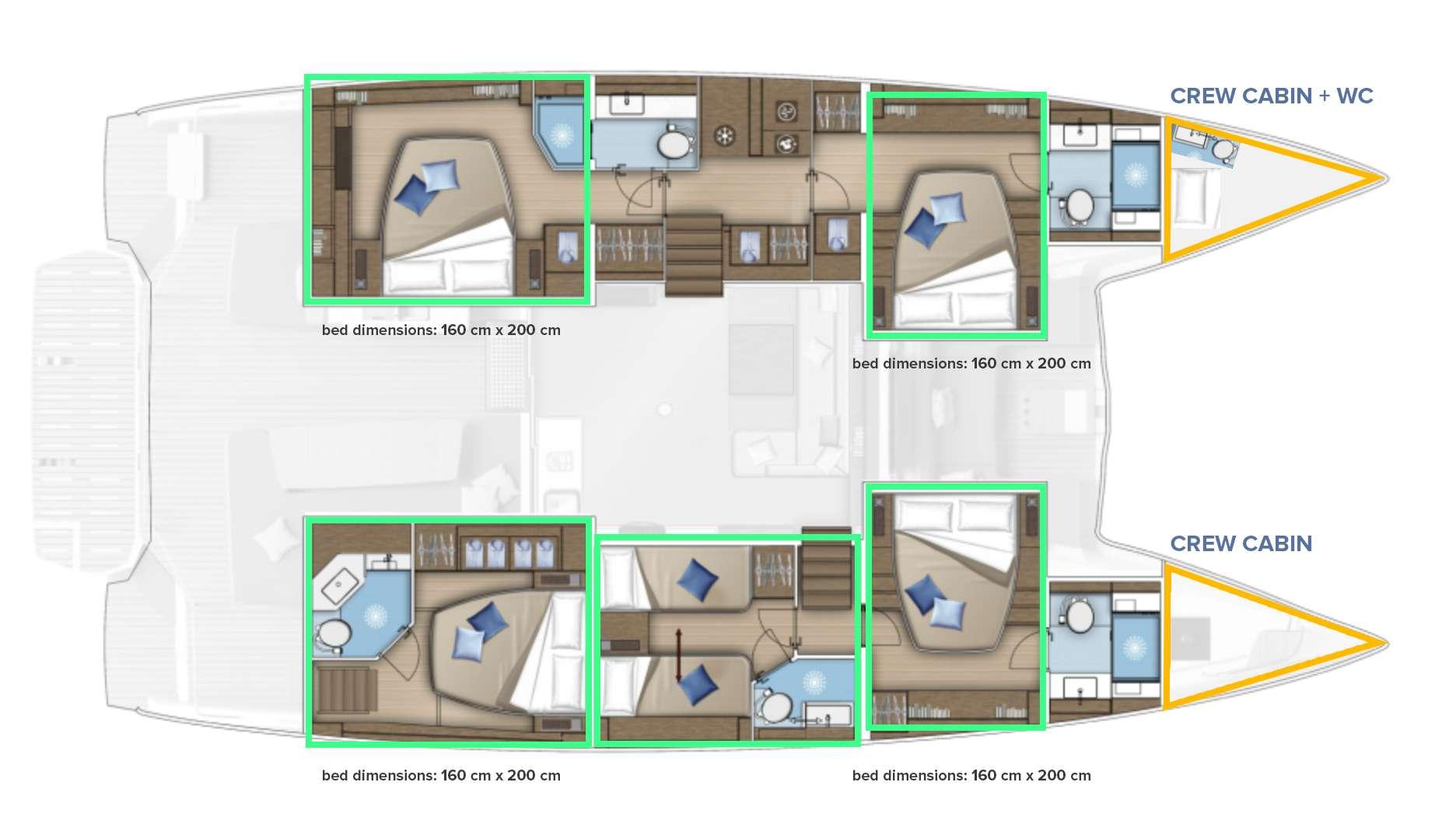 Cabin configuration: 4 double and 1 twin cabin