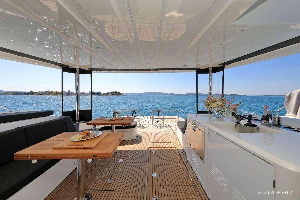 Every detail on board supports relaxed cruising. Air conditioning, generator, watermaker, smart TV, internet, and Bluetooth sound system ensure modern comfort throughout your charter. The galley’s open positioning enhances interaction between indoor and outdoor dining spaces, while 2 dedicated crew members - captain and hostess - provide attentive yet discreet service. CHAMPAGNE PLEASE for charter delivers a smooth and elevated Croatia sailing experience from embarkation to farewell.