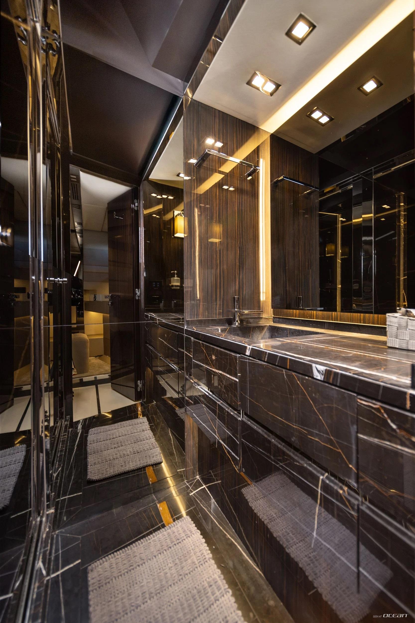En-suite bathrooms in all cabins, air condition throughout, 2 generators, Wi-Fi internet, 8 mirror TVs fitted throughout the yacht including bathrooms, home theatre system in cabins, Stereo Radio/CD Player with iPod and iPhone connectivity, hydraulic swimming platform, underwater lights, stern/cockpit shower, and water toys