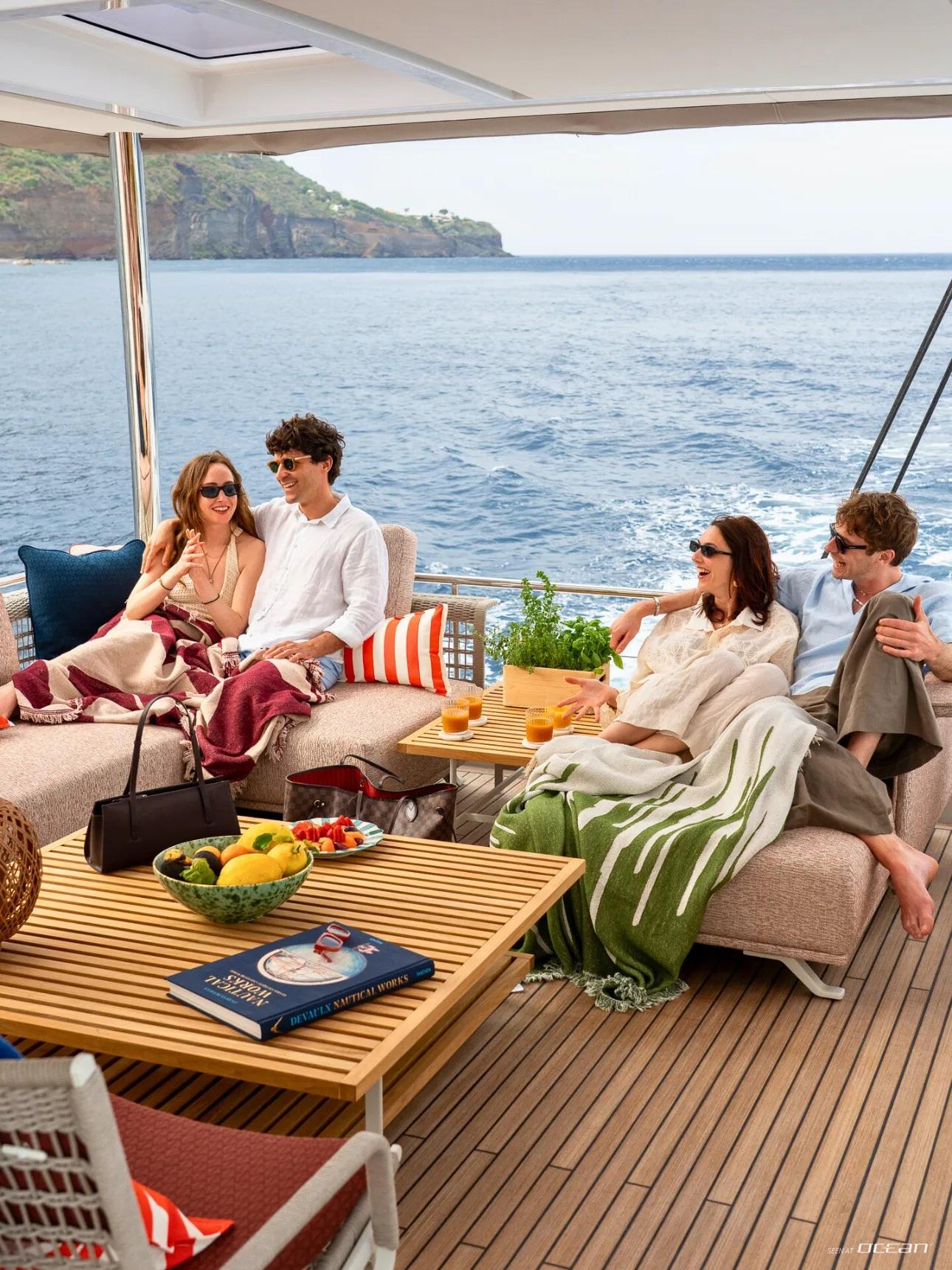 Luxury Sailing Catamaran GLORIA offers effortless access to Sicily, the Aeolian Islands, and the iconic coastline of Amalfi and Capri. A hydraulic swimming platform provides easy water access and launching for the tender, seascooters, and stand-up paddleboards. GLORIA delivers a relaxed Luxury Crewed Sailing Catamaran Experience in Italy, combining space, comfort, and a natural connection to the sea.