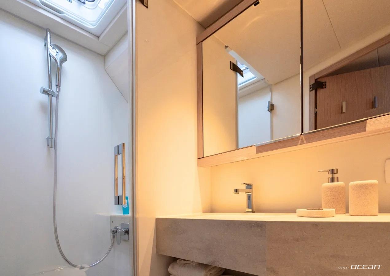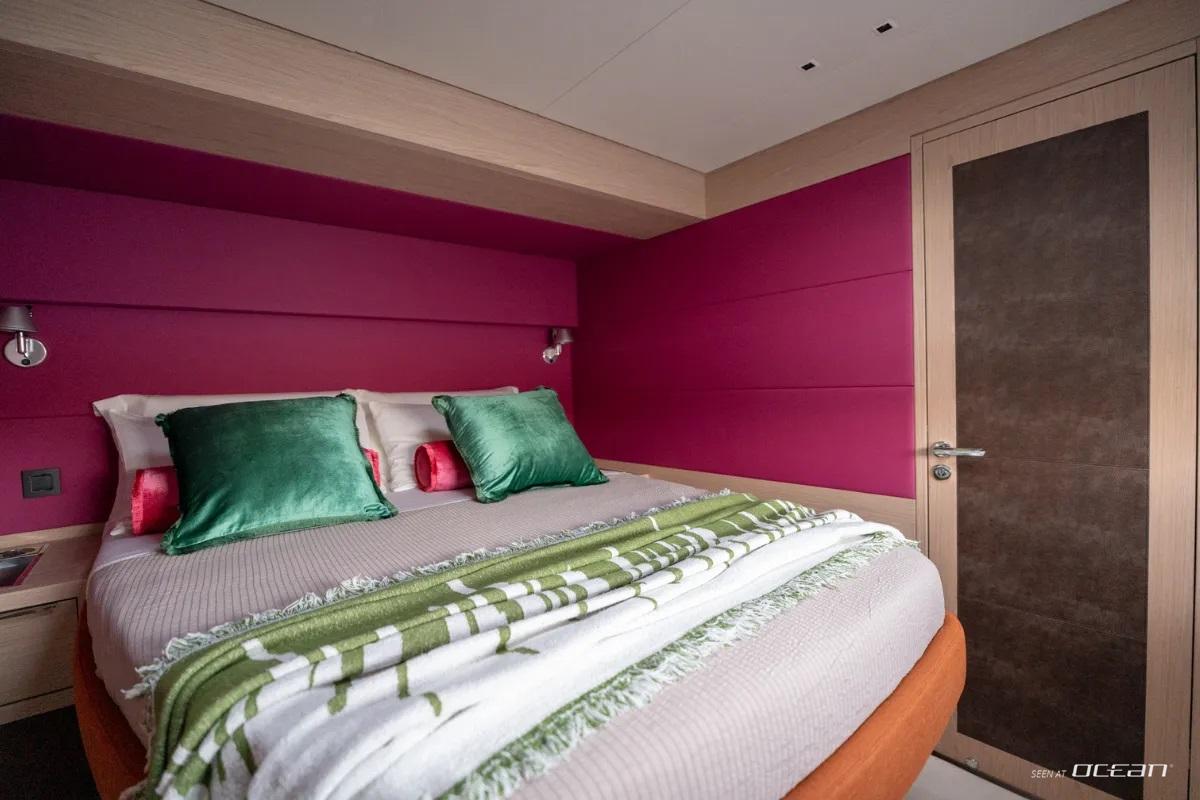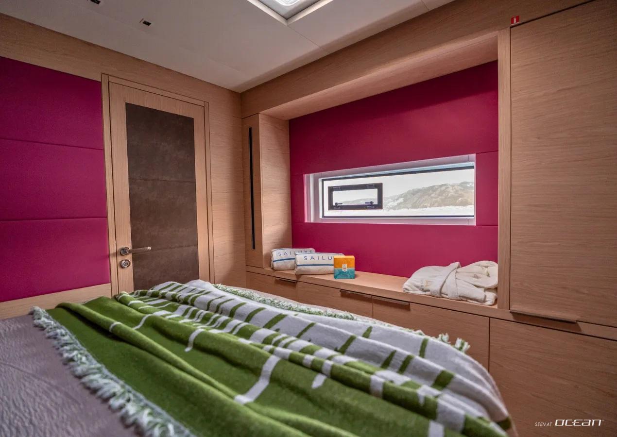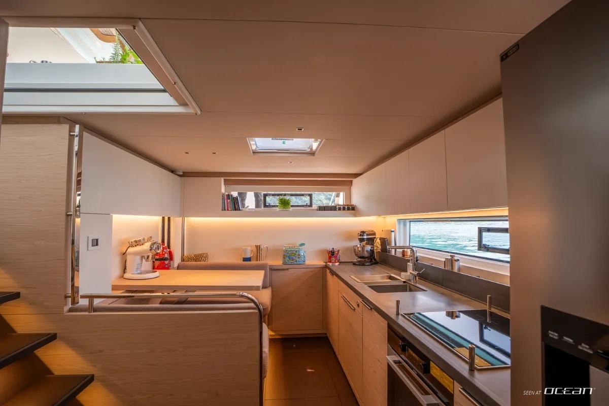 Inside, Lagoon Sixty 5 GLORIA for charter accommodates 8 guests in 4 double cabins, with an optional triple cabin available for up to 11 guests on request and at a surcharge. Each cabin features ensuite facilities, providing privacy and comfort for all guests. The layout works perfectly for families and groups of friends, supported by a professional crew of 4 ensuring a smooth and enjoyable charter experience.