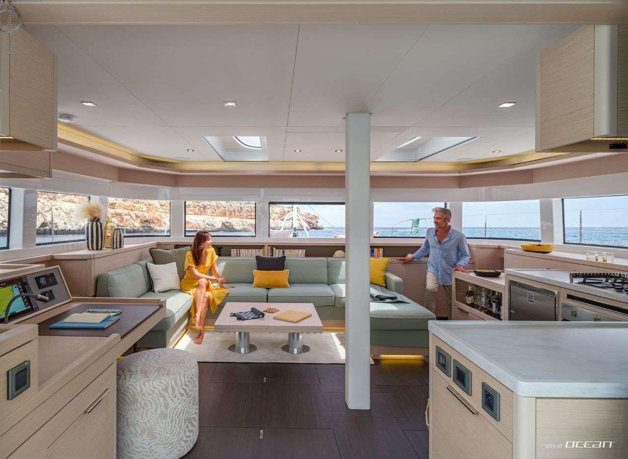 Open-air living is central to the experience, and IRIS Lagoon 55 for charter offers a variety of well-connected outdoor areas. The flybridge provides elevated seating and panoramic views, while the forward cockpit and aft deck create inviting spaces for lounging, dining, and socializing. Designed for easy movement and comfort, these areas allow guests to fully enjoy each moment on the water from morning through evening.
