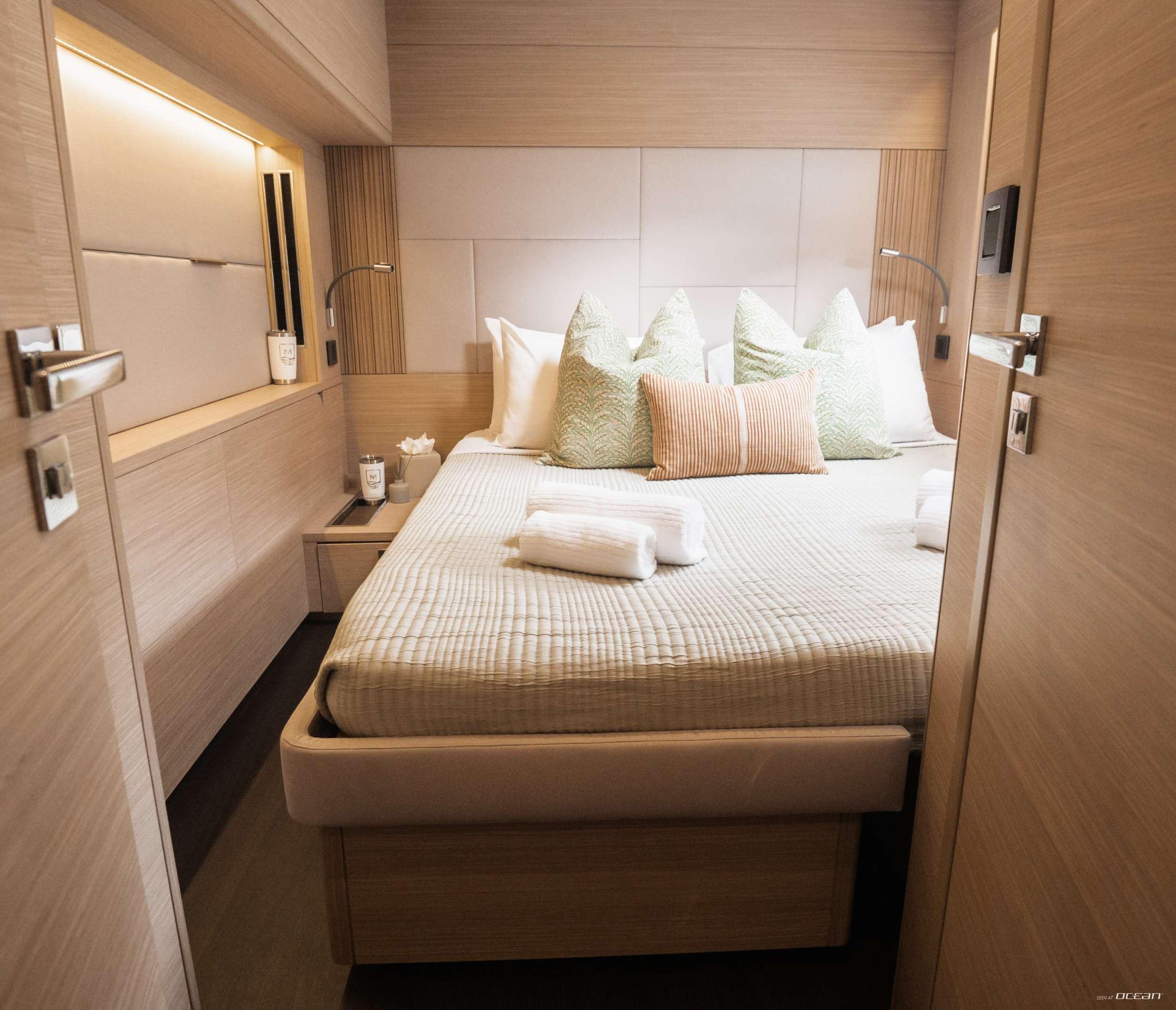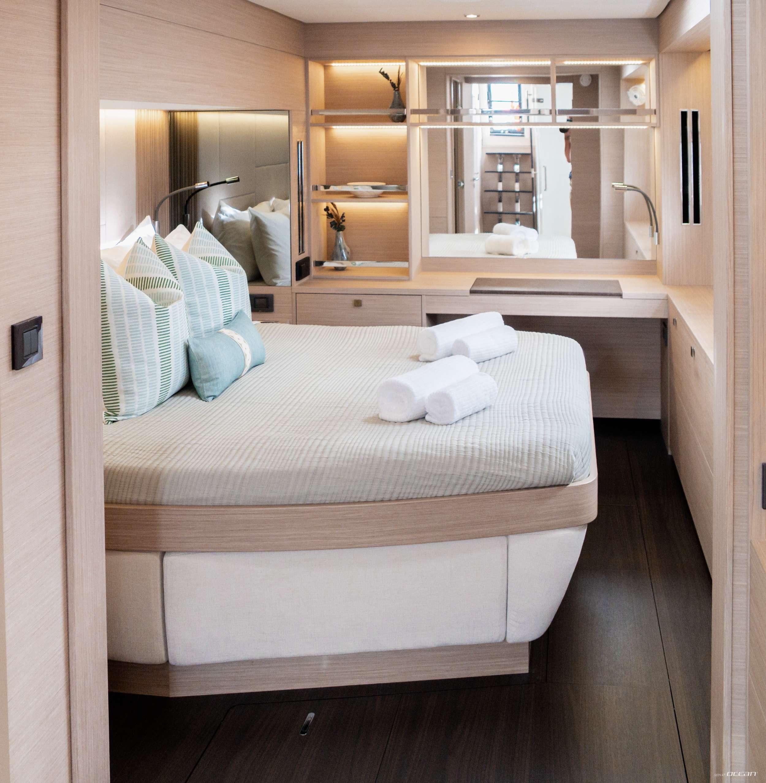Luxury sailing catamaran MINTED ONE accommodates up to 8 guests in 4 well-appointed cabins, including a generous master stateroom with direct access to the aft cockpit and bright salon. Additional guest cabins offer equal comfort and privacy, making the layout ideal for couples, friends, or families. Thanks to the inherent stability of the Lagoon 60 platform, life onboard remains comfortable both underway and at anchor.