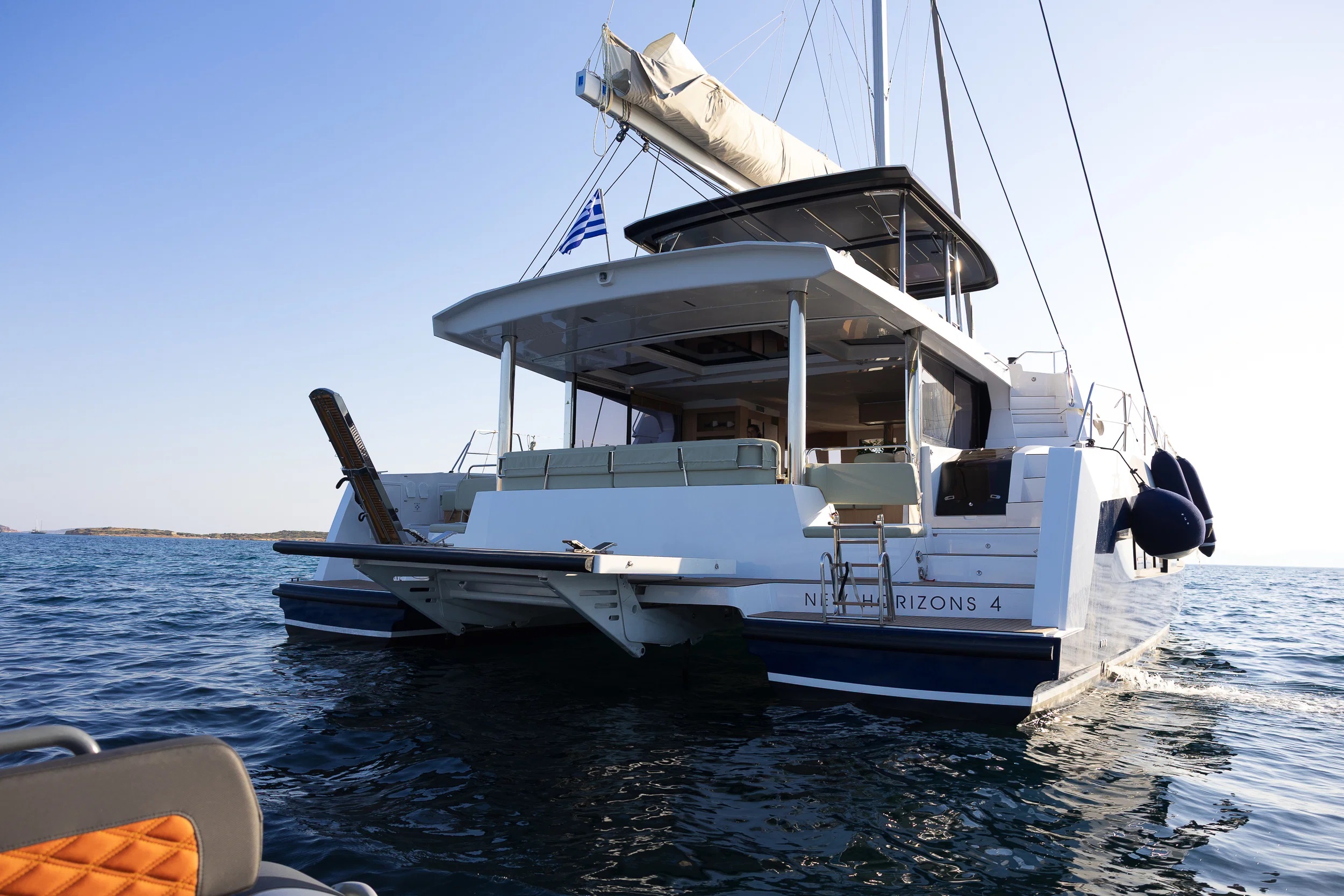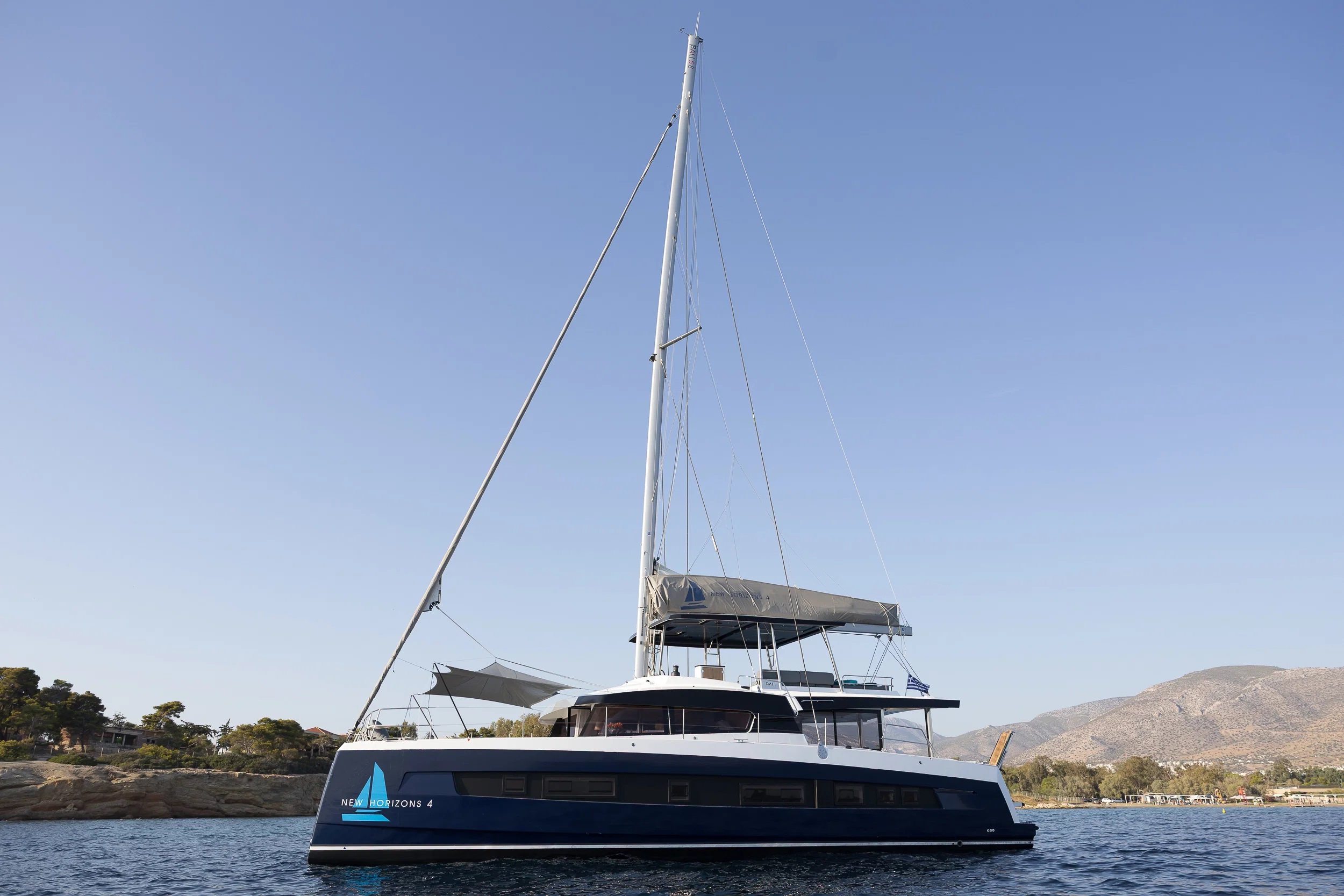 NEW HORIZONS 4 is available for charter in Greece as a 2025-built Bali 5.8, cruising between Athens and the Ionian Islands to cover a wide range of Greek itineraries. This flagship sailing catamaran is designed for space and usability, combining a full-beam layout with open-plan living areas suited to modern charter requirements. Built by Bali Catamarans and styled by Piaton Bercault Yacht Design, the model is recognized for its forward cockpit lounge, wide flybridge, and seamless connection between interior and exterior spaces, creating a practical and social environment on board.