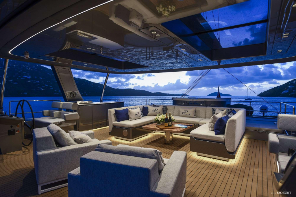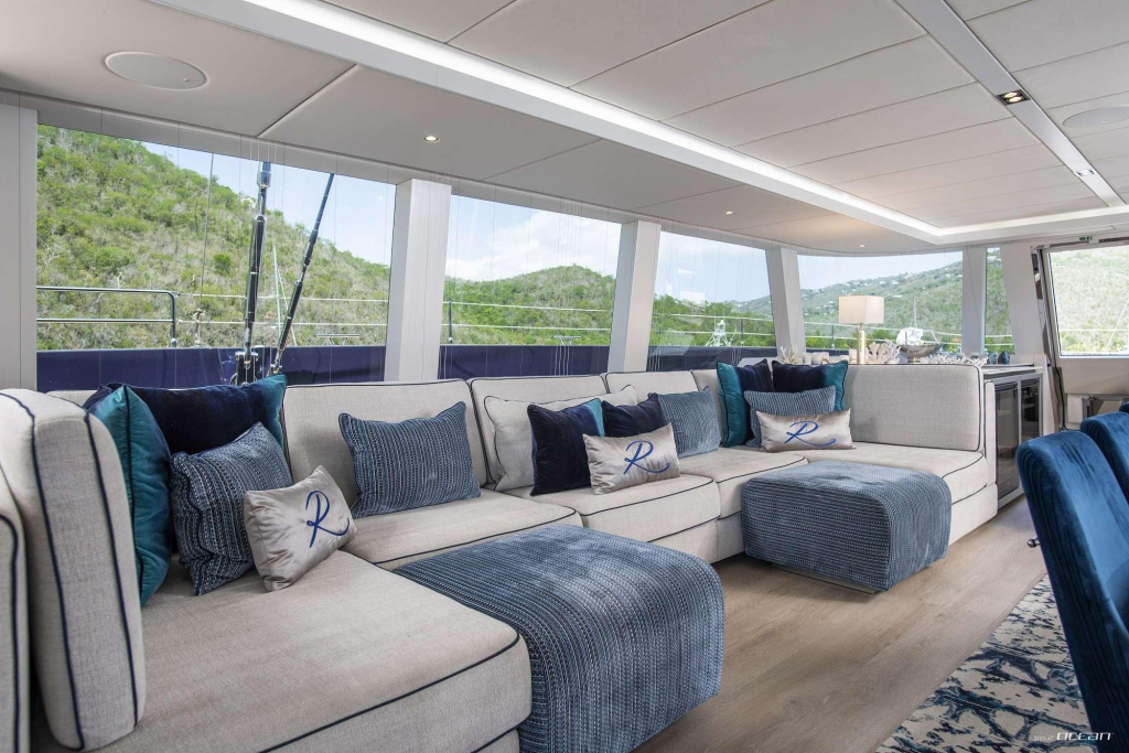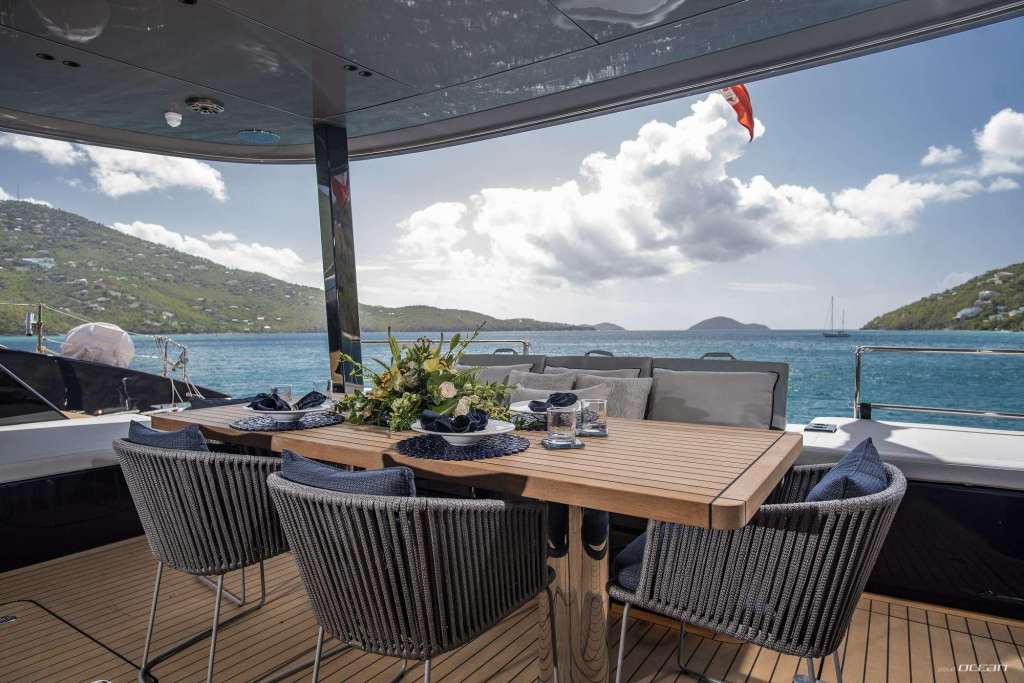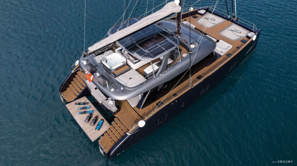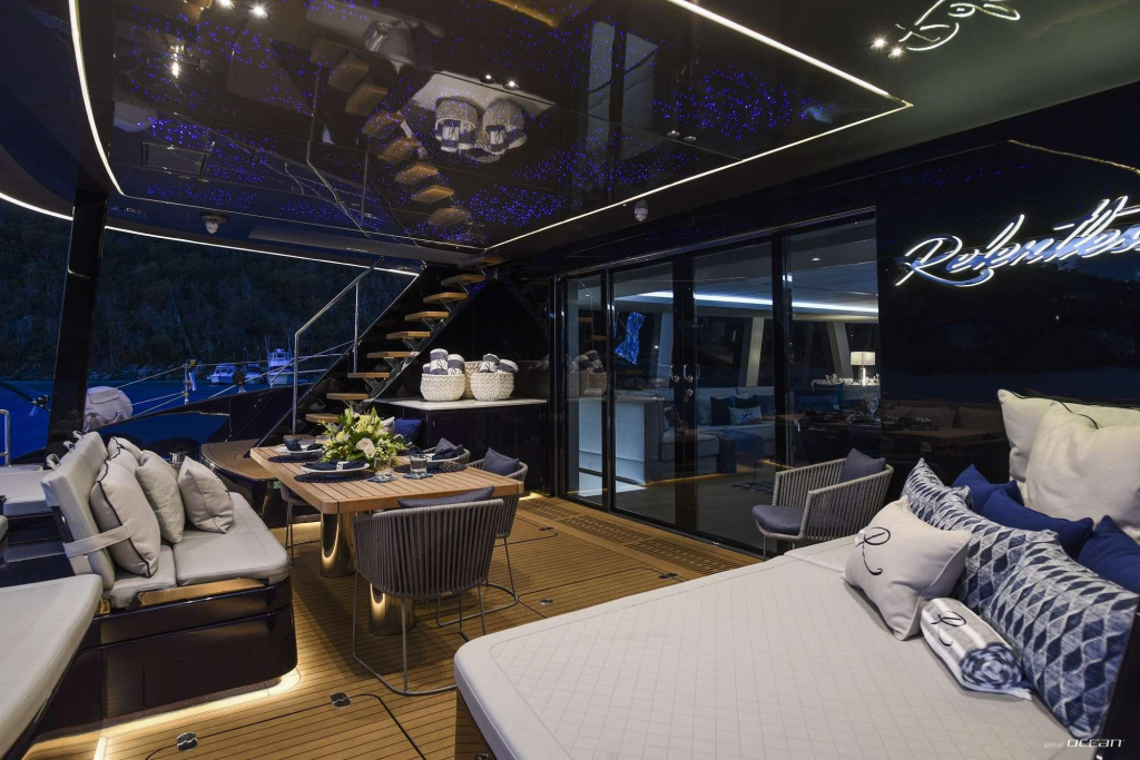 Designed for elevated outdoor living, RELENTLESS II features expansive deck areas, a generous flybridge with jacuzzi, and multiple lounging and dining zones that highlight the Sunreef 80’s wide-beam configuration. Her Caribbean cruising setup includes an impressive selection of water toys, making her equally suited for adventure and relaxation.