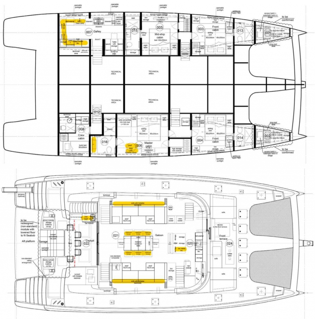 Cabin configuration: 1 master and 3 double cabins