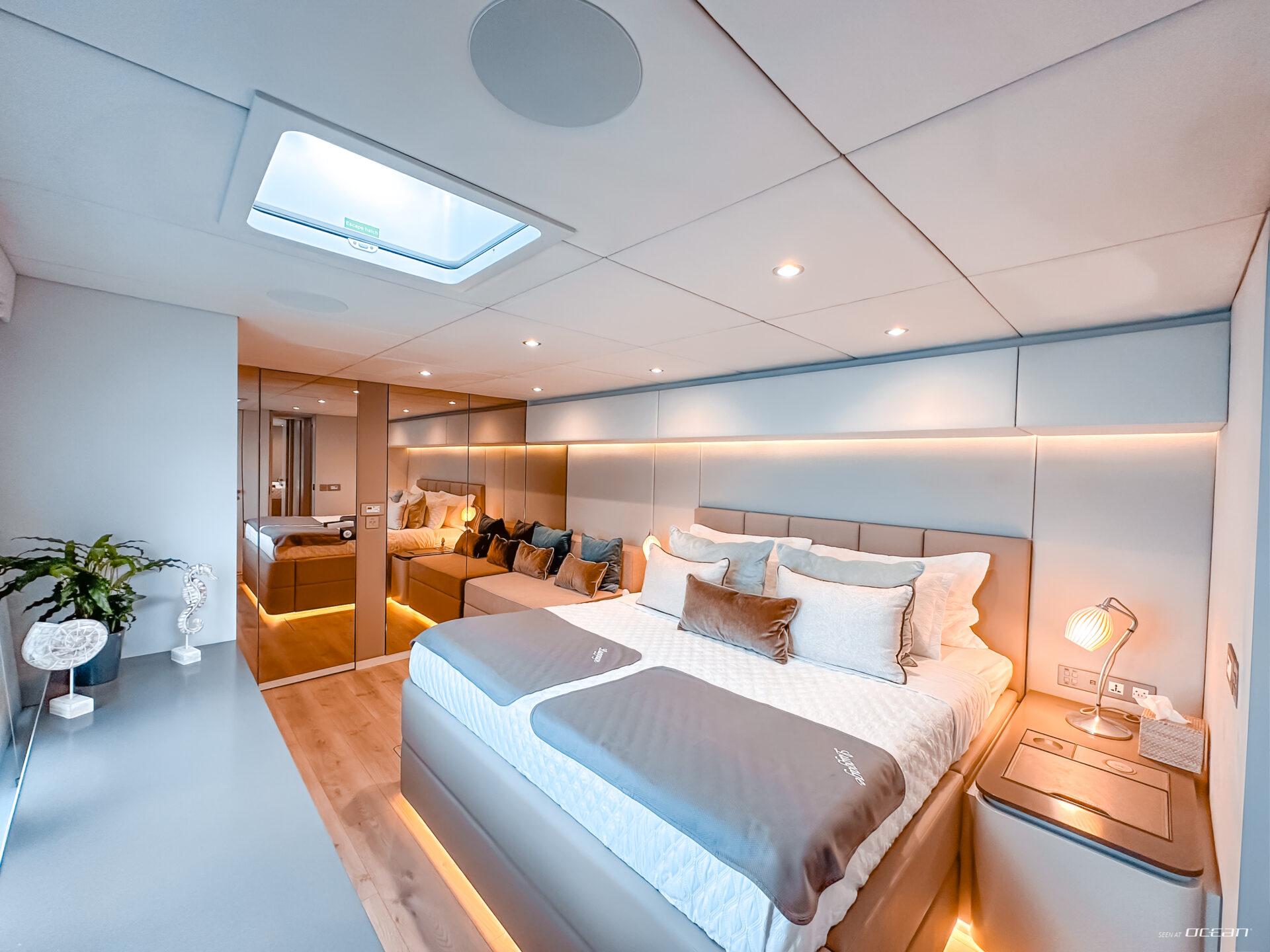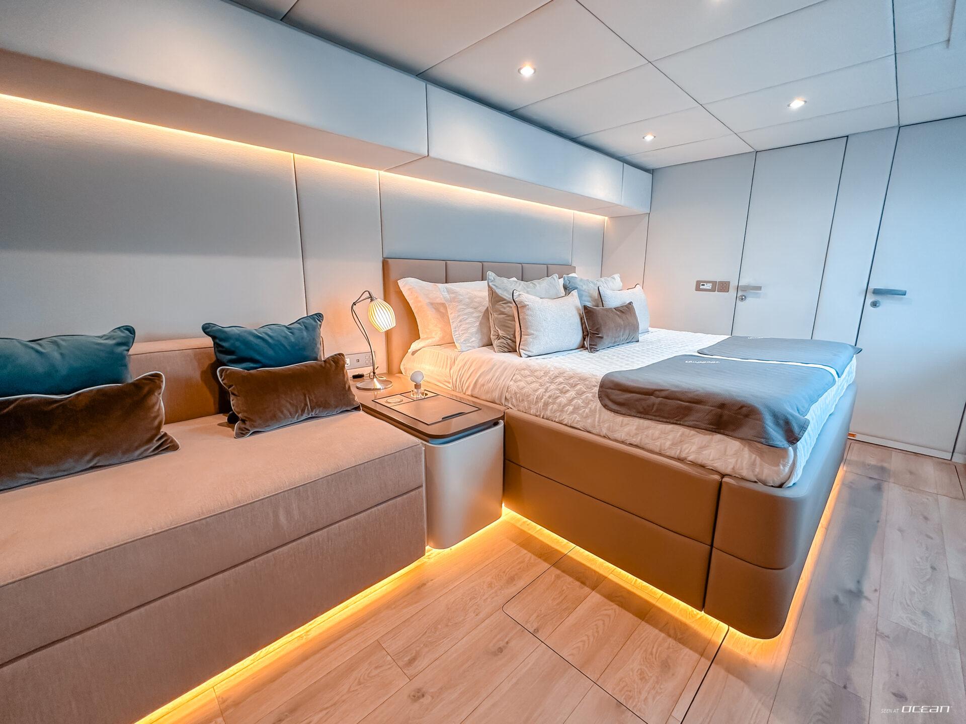 Sunreef 80 SEACLUSION catamaran for charter accommodates up to 8 guests in 4 luxurious en-suite cabins, including a spacious master stateroom. Each cabin offers privacy, comfort, and refined detailing, ideal for families or couples traveling together. Bluetooth sound systems and Starlink internet ensure entertainment and connectivity on board, supported by a professional crew of 4 delivering attentive and discreet service throughout the journey.