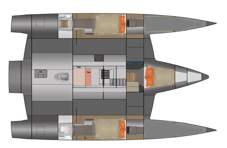 Accommodation aboard our Neel 47 includes 4 double cabins for up to 8 guests, sharing 3 heads. The main deck cabin offers easy access and sea views, while the lower cabins provide quiet comfort and privacy. Practical equipment such as a watermaker device, solar panels, inverter, AIS, and a BBQ grill ensures autonomy and convenience during longer passages.
