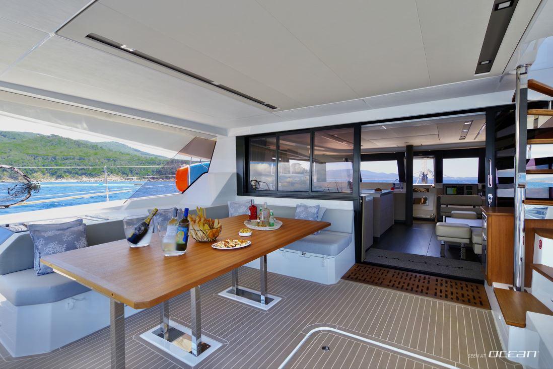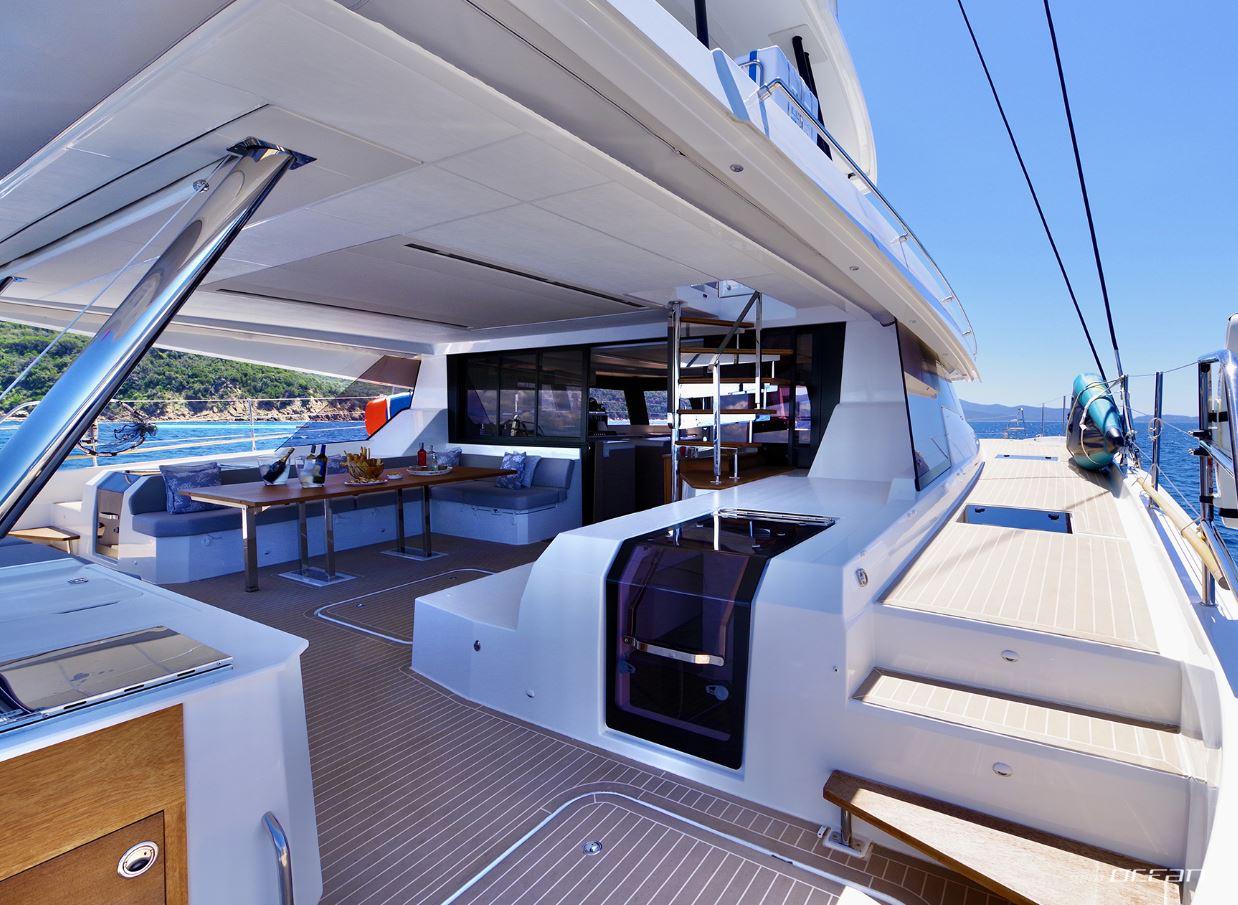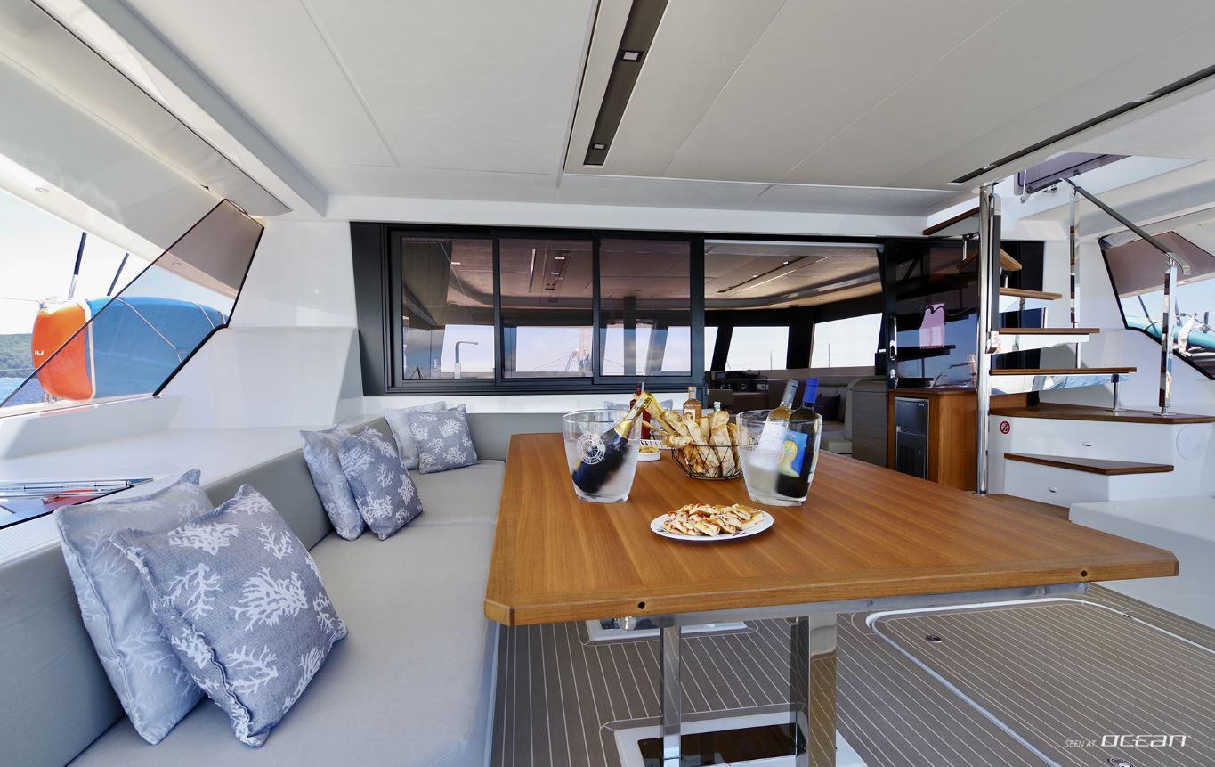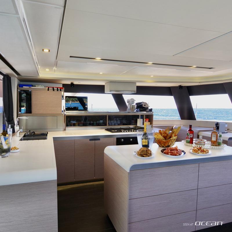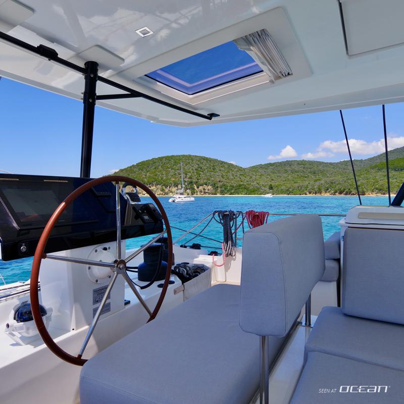 Life on board centers around outdoor enjoyment, and sailing catamaran Samana 59 for charter offers multiple areas for dining, lounging, and water access. A flybridge with panoramic views, a spacious cockpit with BBQ grill, and a forward relaxation area provide flexibility throughout the day. The hydraulic bathing platform serves as an easy launching point for seabobs, stand-up paddleboards, kayaks, and towables, adding a dynamic element to each anchorage.