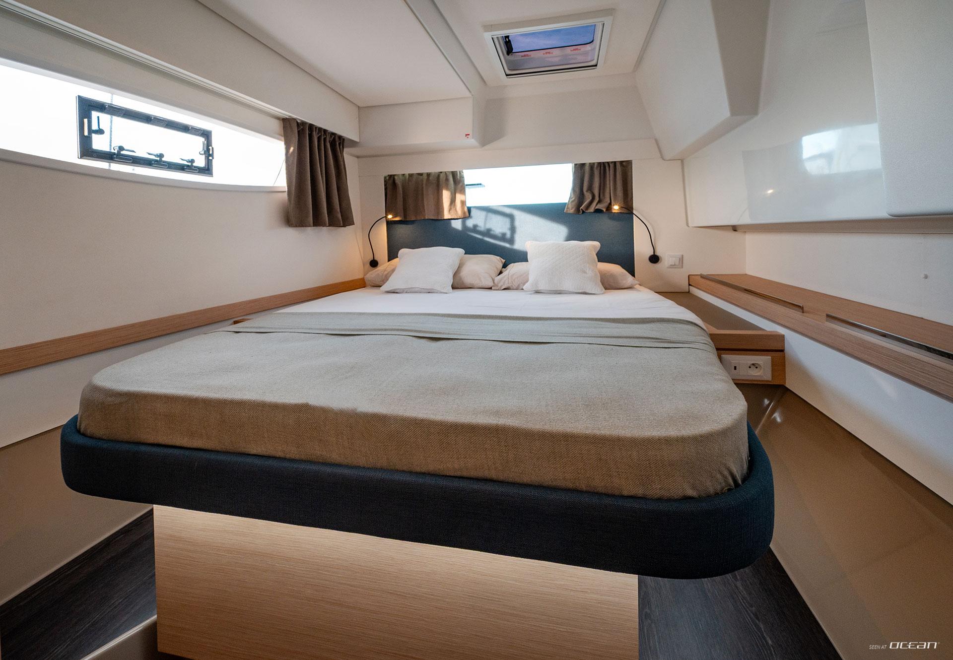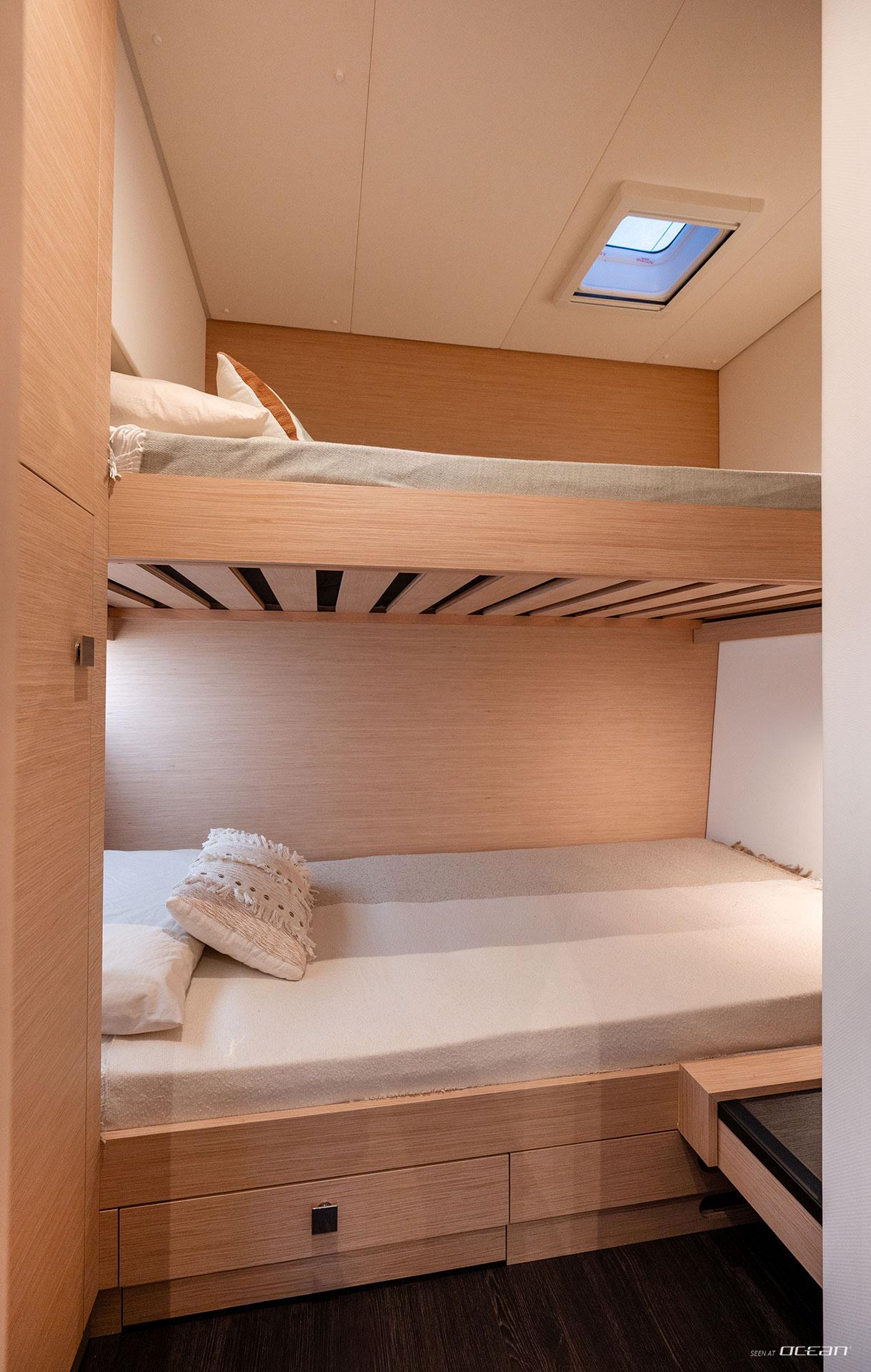 Charter catamaran Tanna 47 accommodates up to 10 guests across a 5+1 cabin layout, including 4 double cabins, 1 bunk bed cabin, and a single forepeak cabin ideally suited for a skipper. This configuration provides flexibility for both bareboat and crewed options, while each cabin is designed to offer a comfortable and functional onboard stay.
