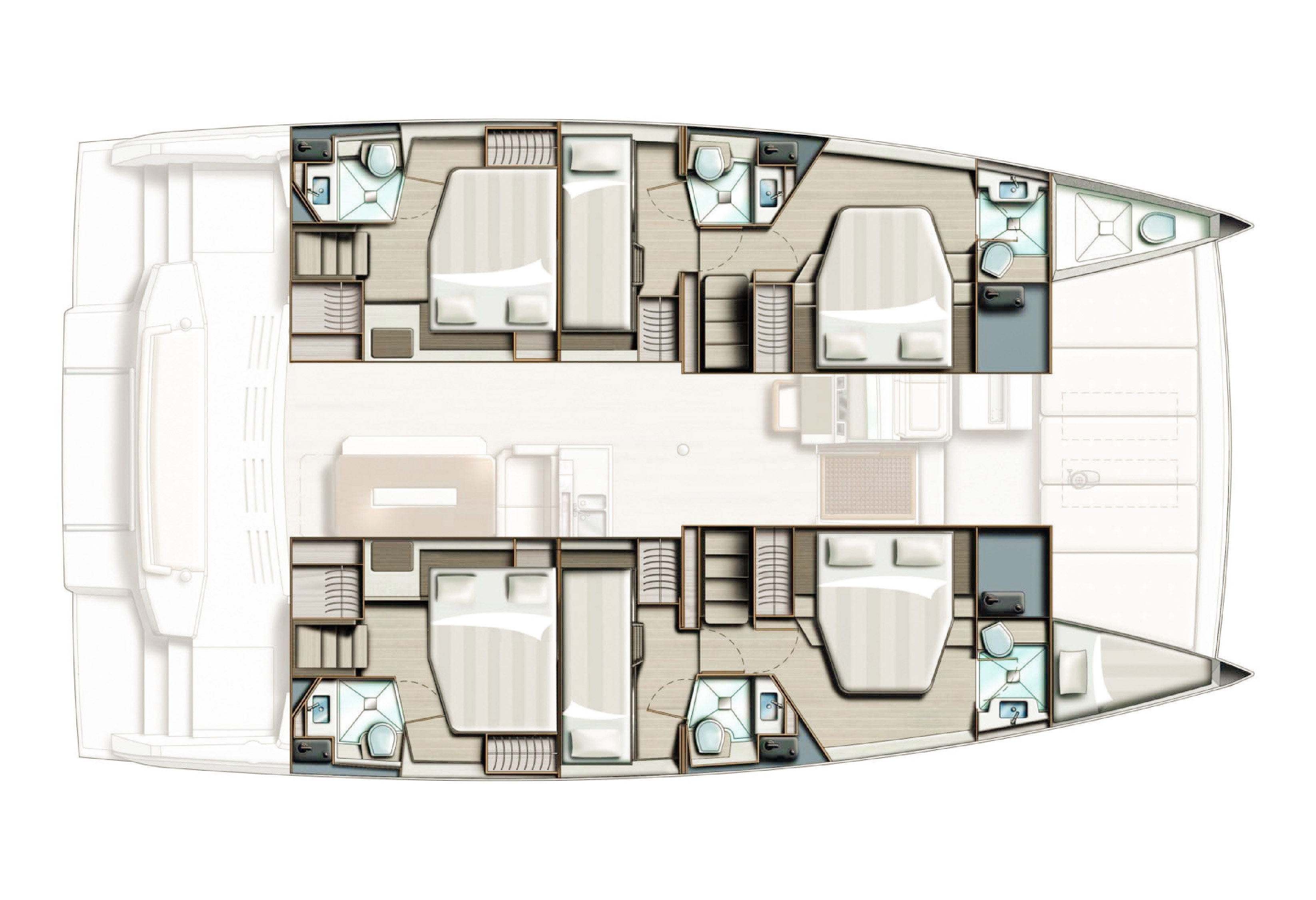 One of the standout features of our Bali 4.8 for charter in Turkey is the rare 6+1 cabin configuration. The layout includes 6 double guest cabins plus a forepeak skipper cabin when chartered with our professional skippers, allowing accommodation for up to 13 guests. This setup is ideal for families, groups of friends, or flotilla-style charters where generous sleeping capacity and privacy are essential.