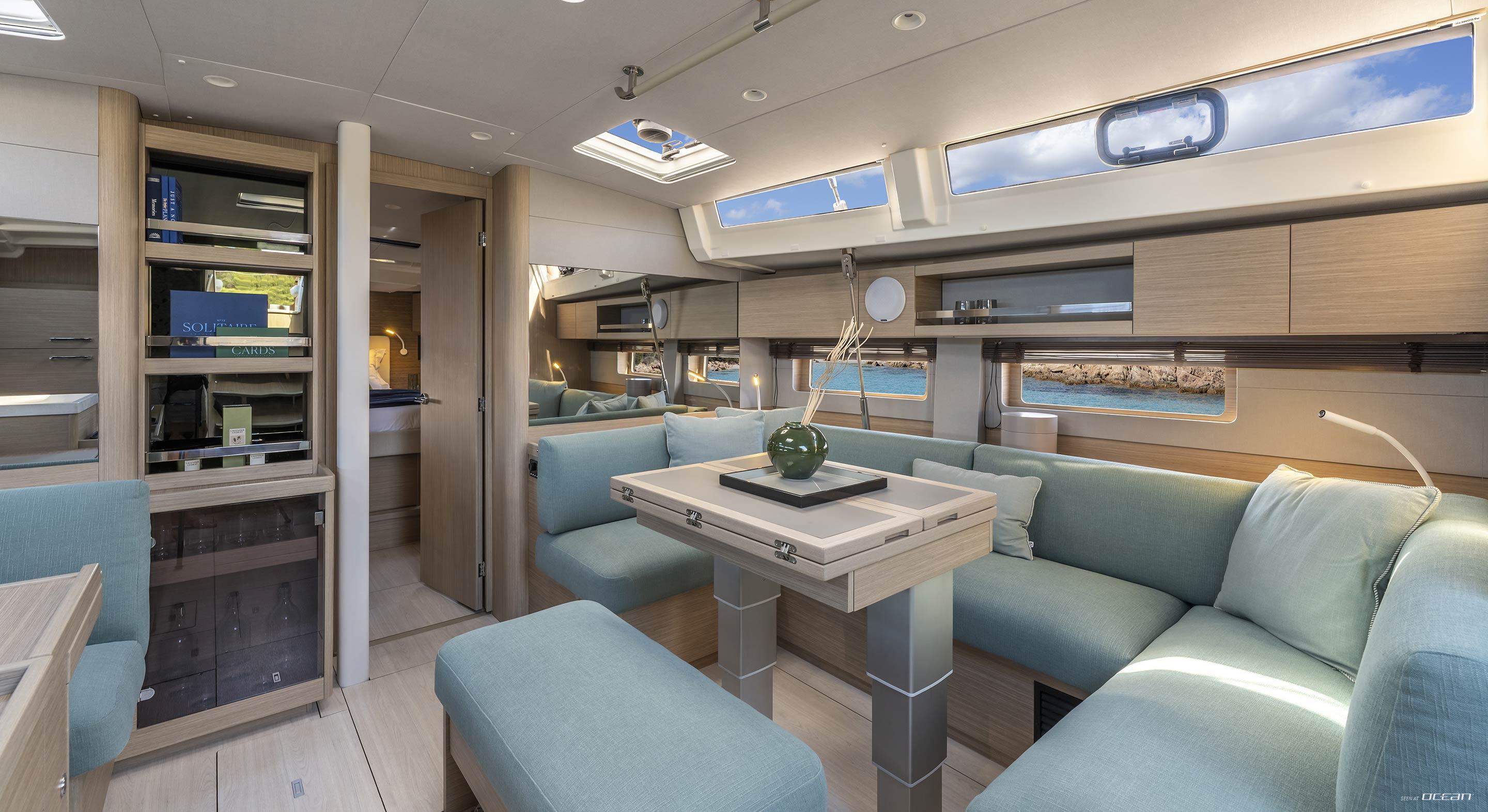 Charter owner's version Oceanis 52 sailboat in Croatia and enjoy a distinctive interior arrangement centered around comfort and privacy. The layout features a spacious master suite forward with a separate shower and bathroom area, complemented by 2 double aft cabins. This configuration is well suited for families and couples seeking a more private and comfortable onboard environment, with a more residential feel throughout. An optional skipper can be accommodated in a separate crew cabin forward, equipped with its own toilet, allowing flexibility between bareboat and skippered arrangements without compromising guest space.