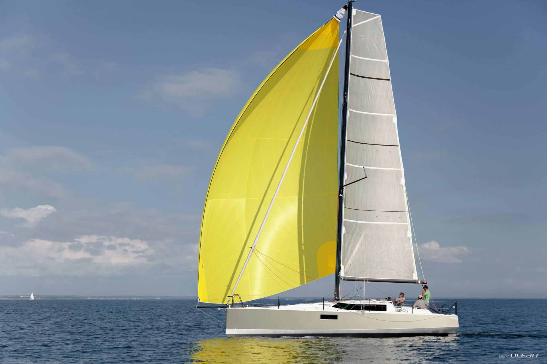 Greece sailing yacht charter, Pogo 36 from Lavrion and Corfu (models 2020-2025): square top mainsail, self-tacking jib, Asymmetric spinnaker A2, gennaker Code0, heating, cockpit shower, bathing platform, and all standard charter and safety equipment