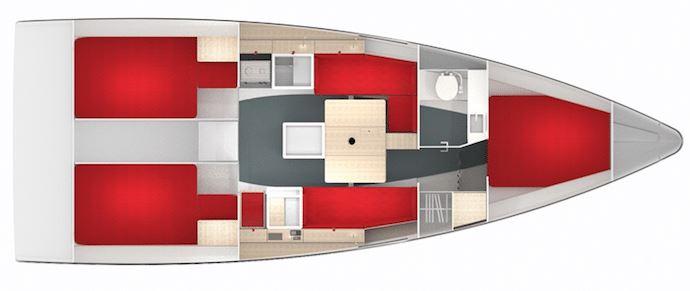 Below deck, charter yacht Pogo 36 offers straightforward and functional accommodation for up to 8 guests sleeping. The layout includes 3 double bed cabins, complemented by additional berths suitable for mixed crews or groups of friends. The interior prioritizes lightness, ventilation, and practical storage, making her well adapted to active sailing days followed by relaxed evenings at anchor.