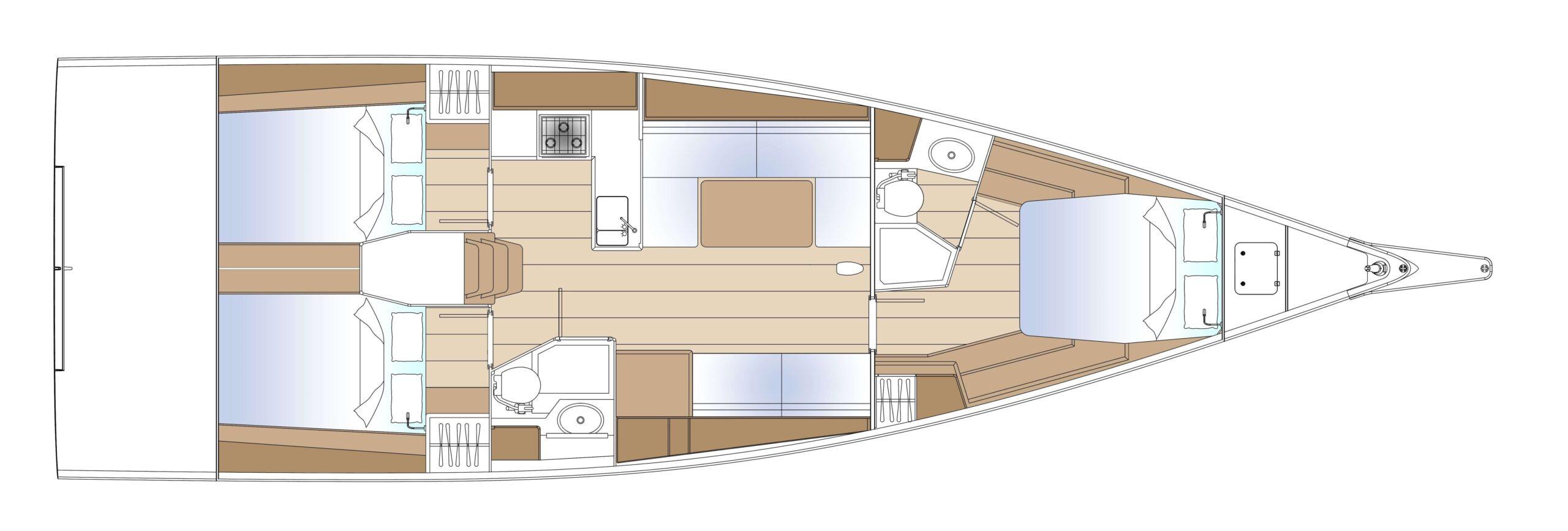 Conceived as a true performance sailing boat, our Solaris 44 delivers responsive handling, excellent balance, and reassuring control across a wide range of conditions. Her modern hull form and efficient sail plan make her enjoyable upwind while remaining composed on longer downwind legs. This is a sailing yacht that rewards skilled sailors while remaining approachable for relaxed island cruising.