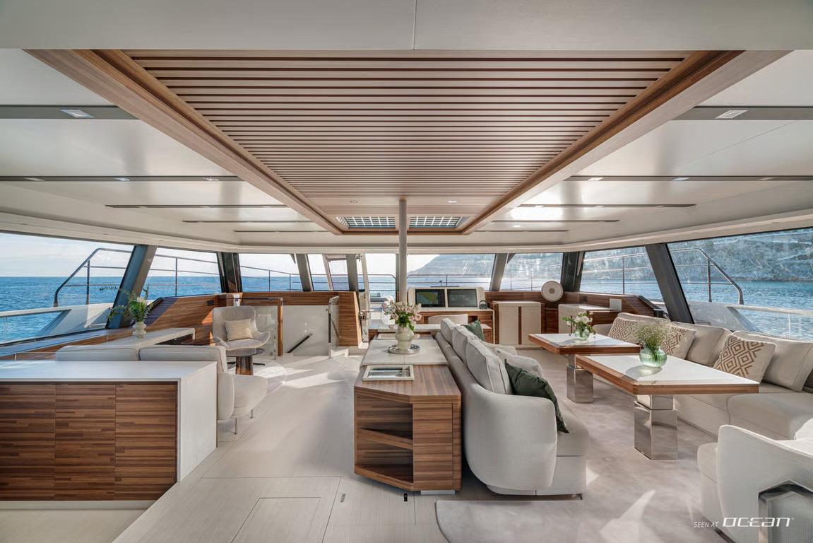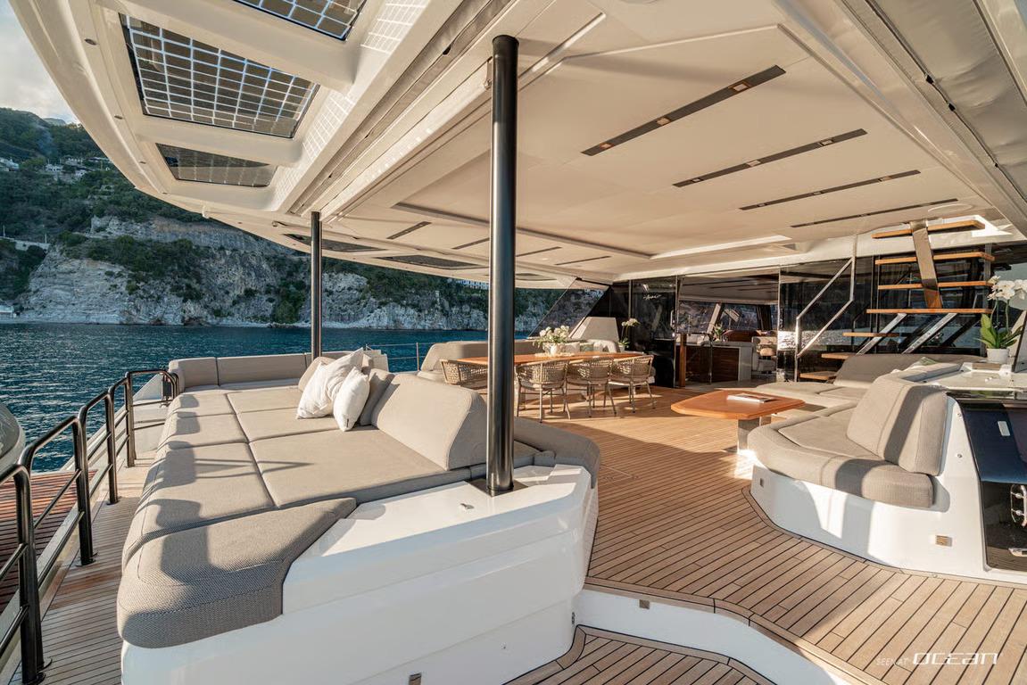 Based in Salerno, CAPRI provides an outstanding platform for exploring the Amalfi Coast, Capri, and the Gulf of Naples, while longer itineraries toward Sardinia, Sicily, and the Aeolian Islands can be arranged on request. Measuring 24m, she showcases the innovative Thira 80 design developed by Berret-Racoupeau together with refined interiors by Pierangelo Andreani, creating bright living spaces and seamless transitions between indoor and outdoor areas.