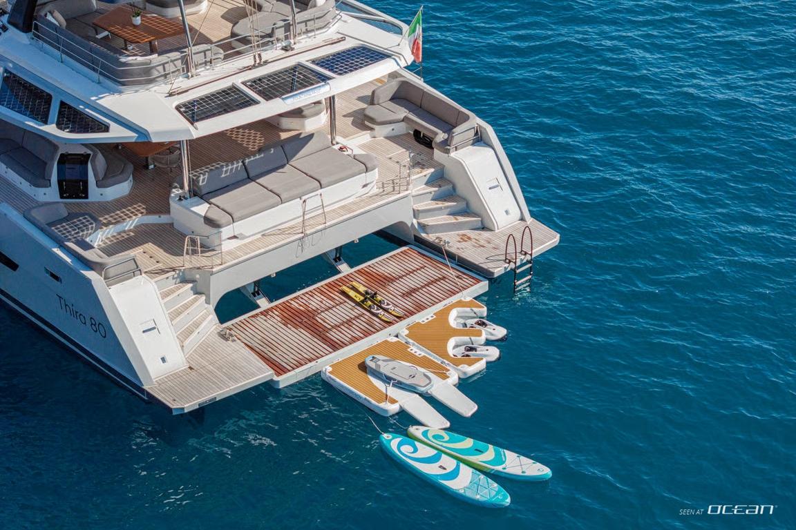 OCEAN Yacht Charter proudly announces the arrival of CAPRI as the first Thira 80 luxury sailing catamaran available for charter in Italy, joining our supercat fleet on the Amalfi Coast. Built in 2025 by the prestigious French shipyard Fountaine Pajot, CAPRI represents a new generation of large sailing catamarans combining impressive performance with exceptional comfort and elegant design.