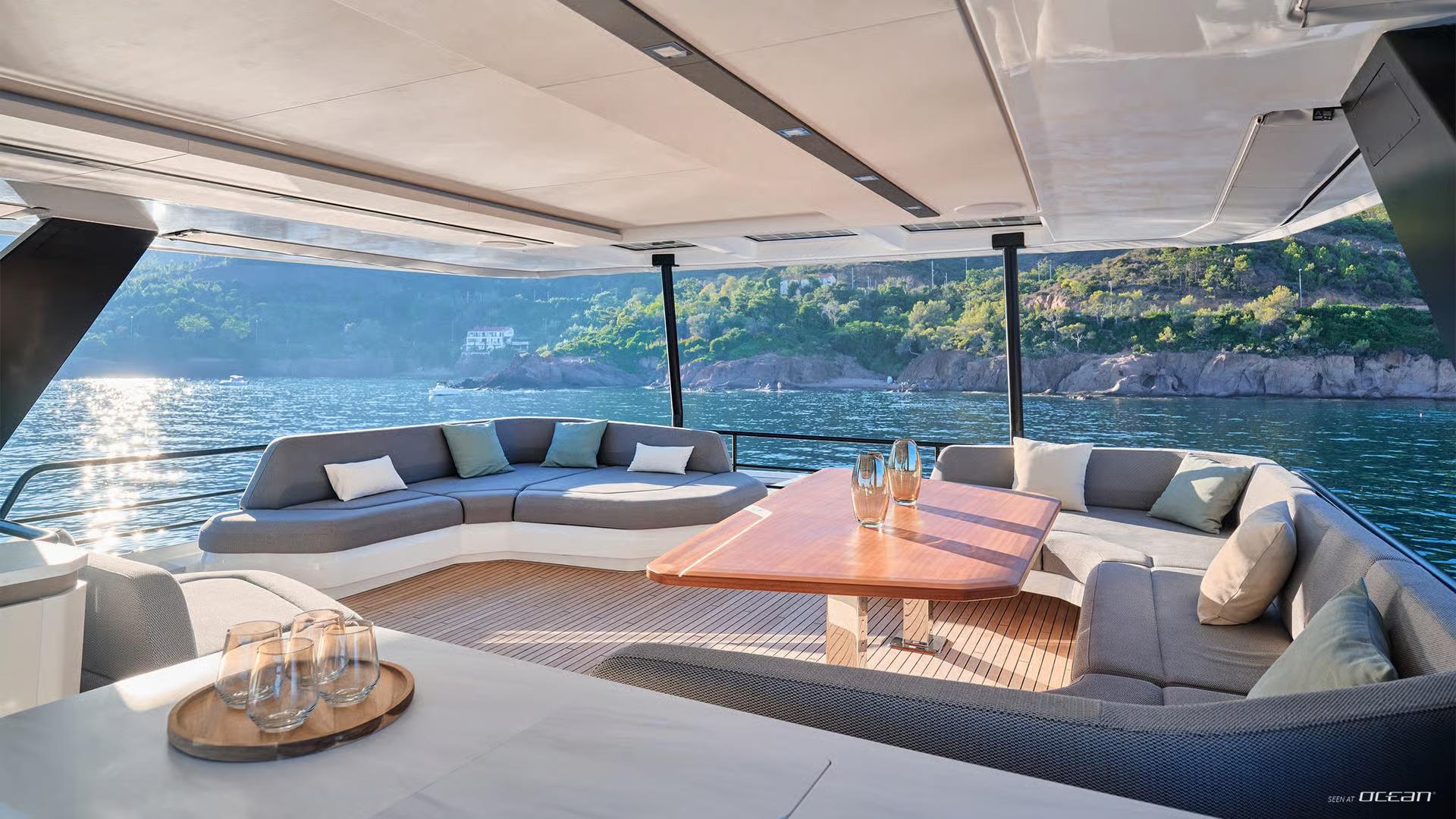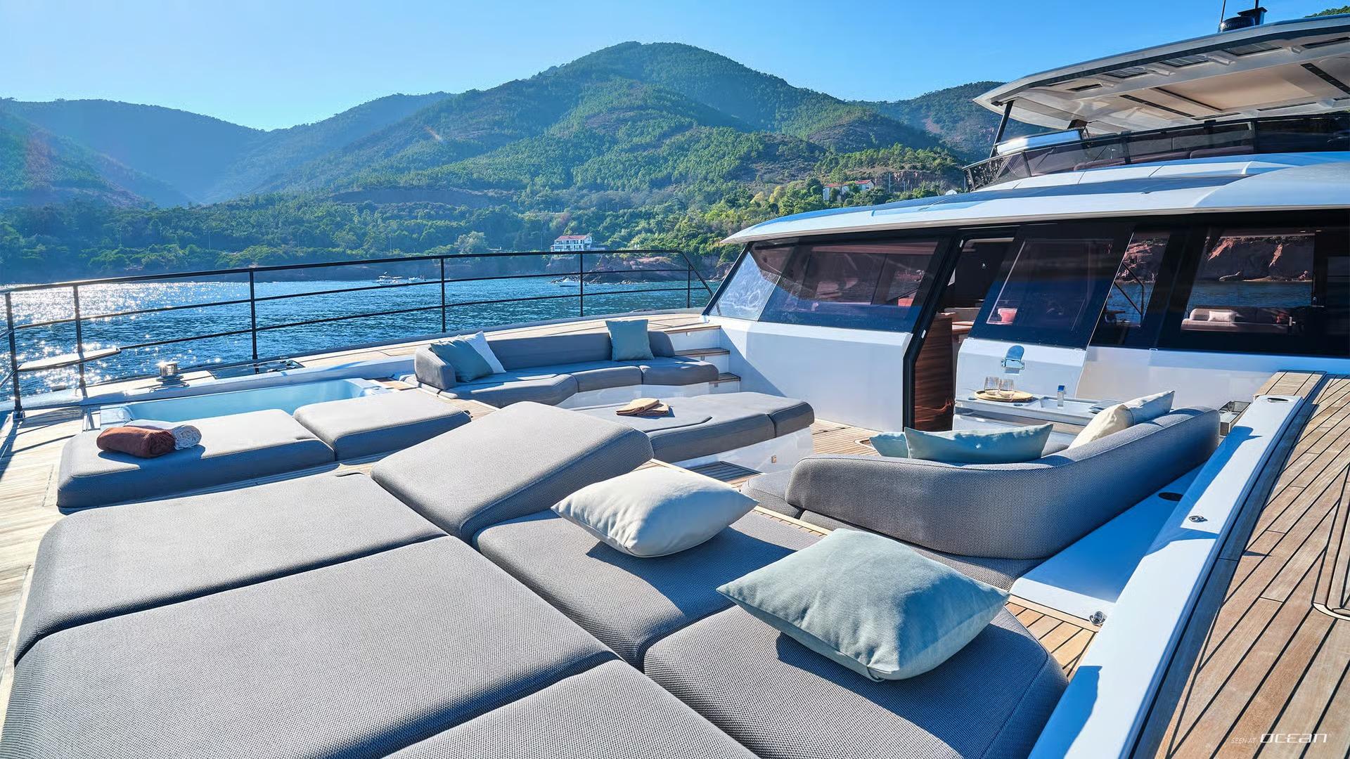 Her galley up layout keeps social life flowing effortlessly, while amenities like a wine cellar for 18 bottles and a mineral and sparkling water filtration system elevate the onboard experience even further.