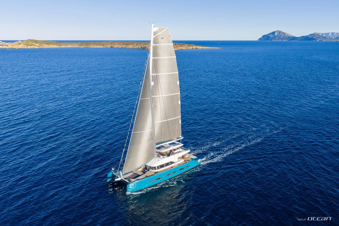 Charter Catamaran IMLADRIS, Lagoon’s flagship Eighty 2, introduces a new standard of refinement on the water. Her 24-meter profile combines the grandeur of a superyacht with the soul and efficiency of a sailing catamaran. Distinguished by her deep blue hull, she radiates presence and sophistication in every marina.