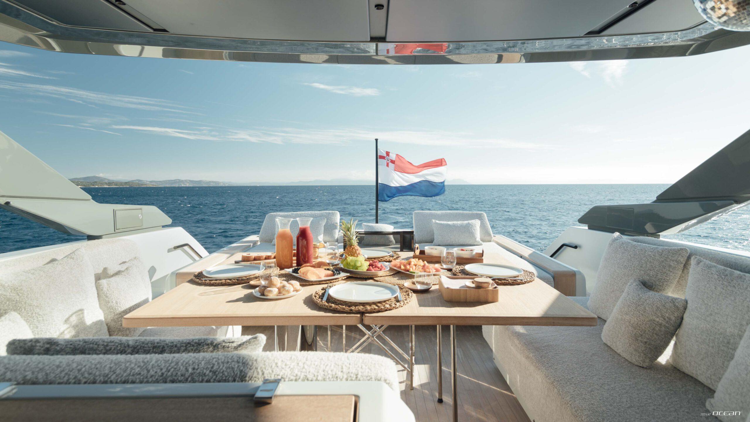 BLUEGAME BG74 stands out with her modern crossover design, merging the performance and protection of a luxury motor yacht with the openness and flexibility of an outdoor cruiser. Her layout is defined by wide walkaround decks, protected circulation, and a strong connection to the sea, creating an onboard atmosphere that feels relaxed, social, and effortlessly Riviera-focused.