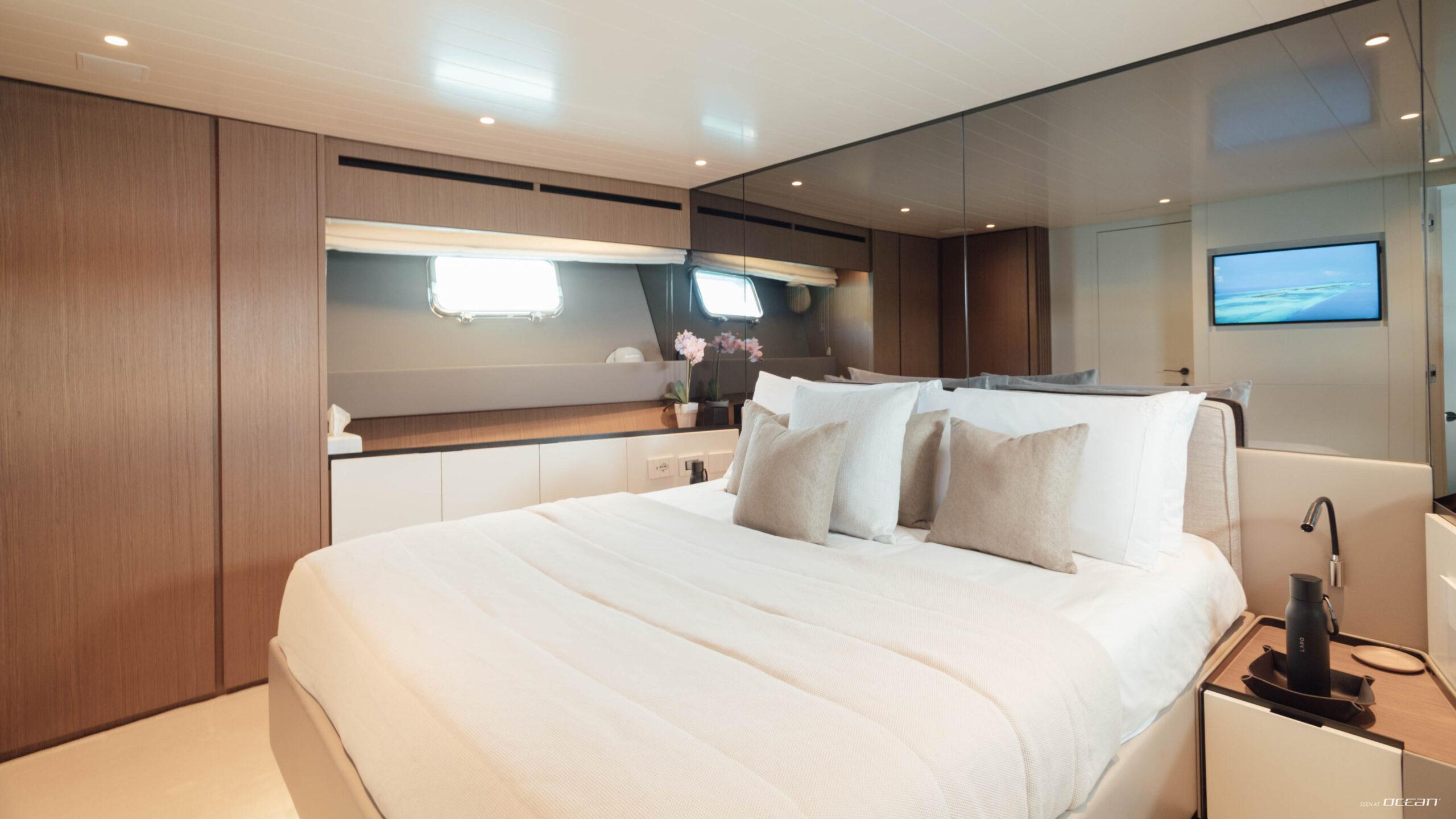 Designed to accommodate up to 6 guests in 3 elegant double cabins, BLUEGAME BG74 offers an inviting setting for couples, families, or intimate charter groups. Each cabin features ensuite bathroom facilities, smart TVs with Netflix, and Starlink internet, ensuring comfort and connectivity throughout the journey. Stabilizer systems both underway and at anchor further enhance onboard comfort while cruising.