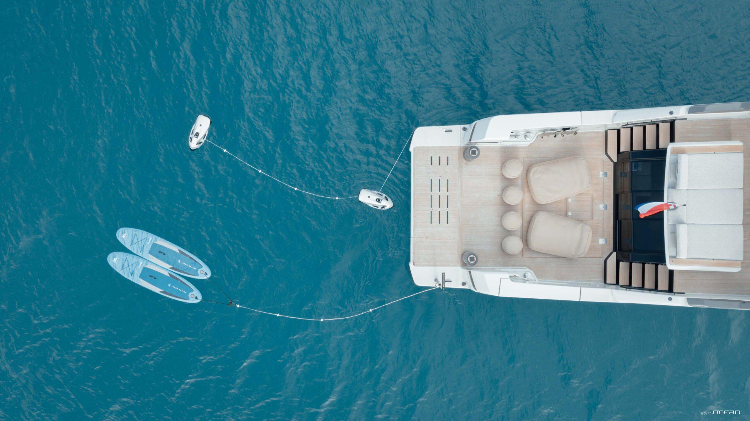 Life on deck centers around the signature Bluegame beach club, offering easy sea access and smooth deployment of seabobs and standup paddleboards. Additional amenities such as onboard gym equipment and a BBQ complete the lifestyle experience. Operated by a professional captain and stewardess, Charter Yacht BLUEGAME BG74 cruises the Côte d’Azur, Corsica, and Sardinia with ease, delivering a refined and contemporary French Riviera Luxury Yacht Charter Experience shaped by freedom, design, and modern Mediterranean living.