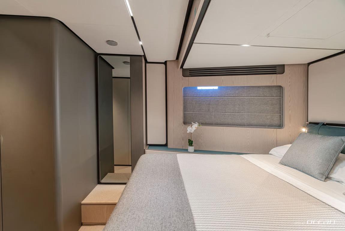 Her 4 guest cabins, including a flexible twin-to-double layout, offer exceptional comfort, while her crew of 4 provide discreet, professional service with a personal touch. Built under Ferretti’s Sustainable Enhanced Architecture (F.S.E.A.), TRILOGY integrates eco-conscious materials such as bamboo fibres and regenerated leathers, proving that luxury and responsibility can sail together beautifully.